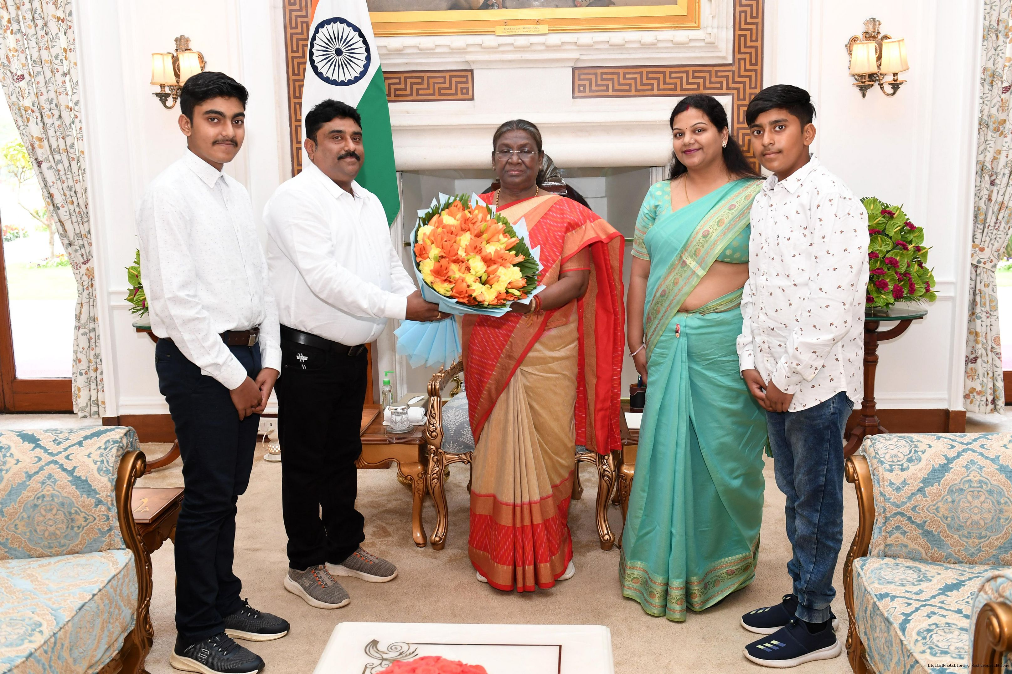 Shri Ritesh Kumar Athghara from Rairangpur along with others meeting with the President of India Smt Droupadi Murmu at Rashtrapati Bhavan on March 28, 2024.