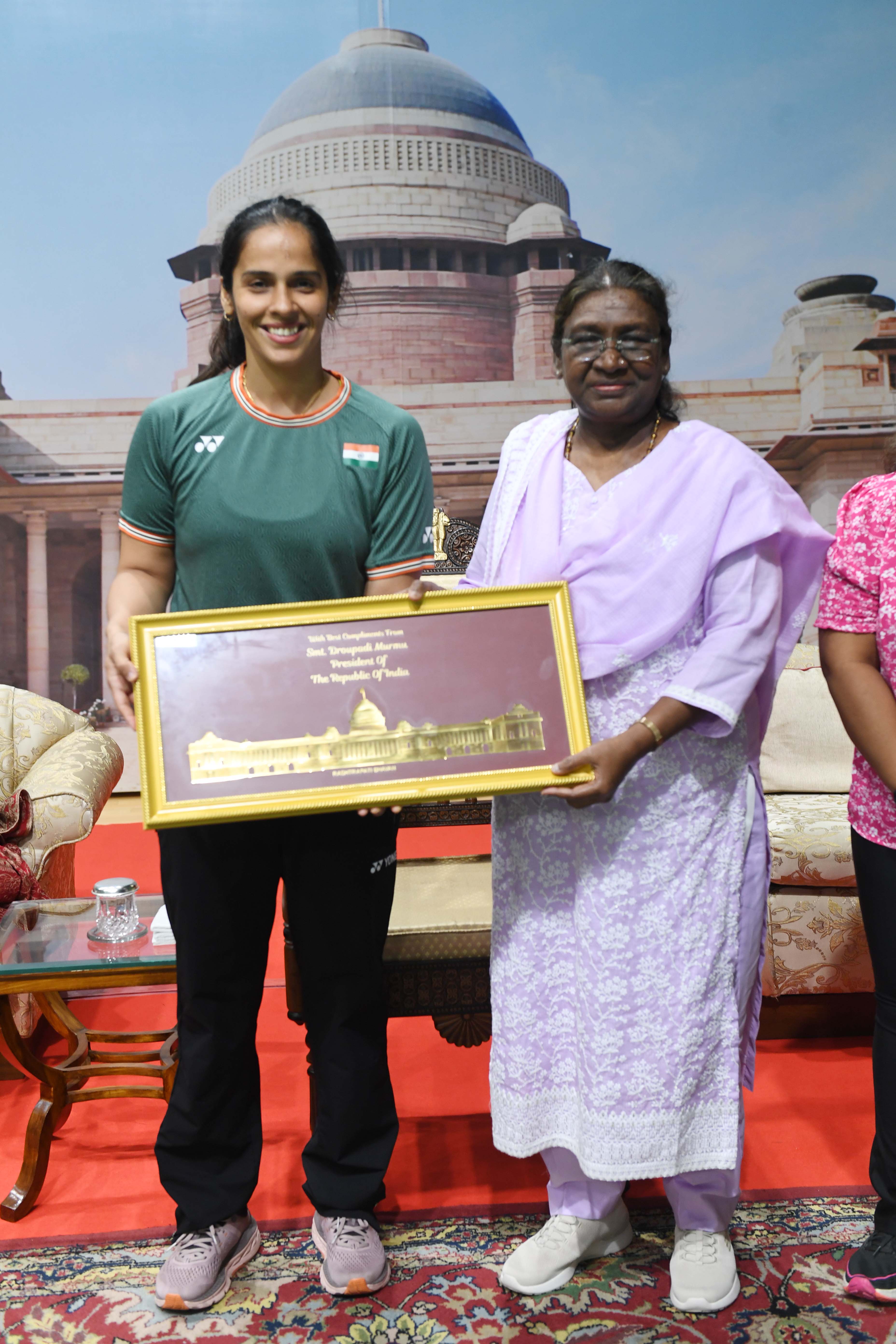 Ms. Saina Nehwal, Indian badminton player called on the President of India Smt. Droupadi Murmu at Rashtrapati Bhavan on July 11, 2024.