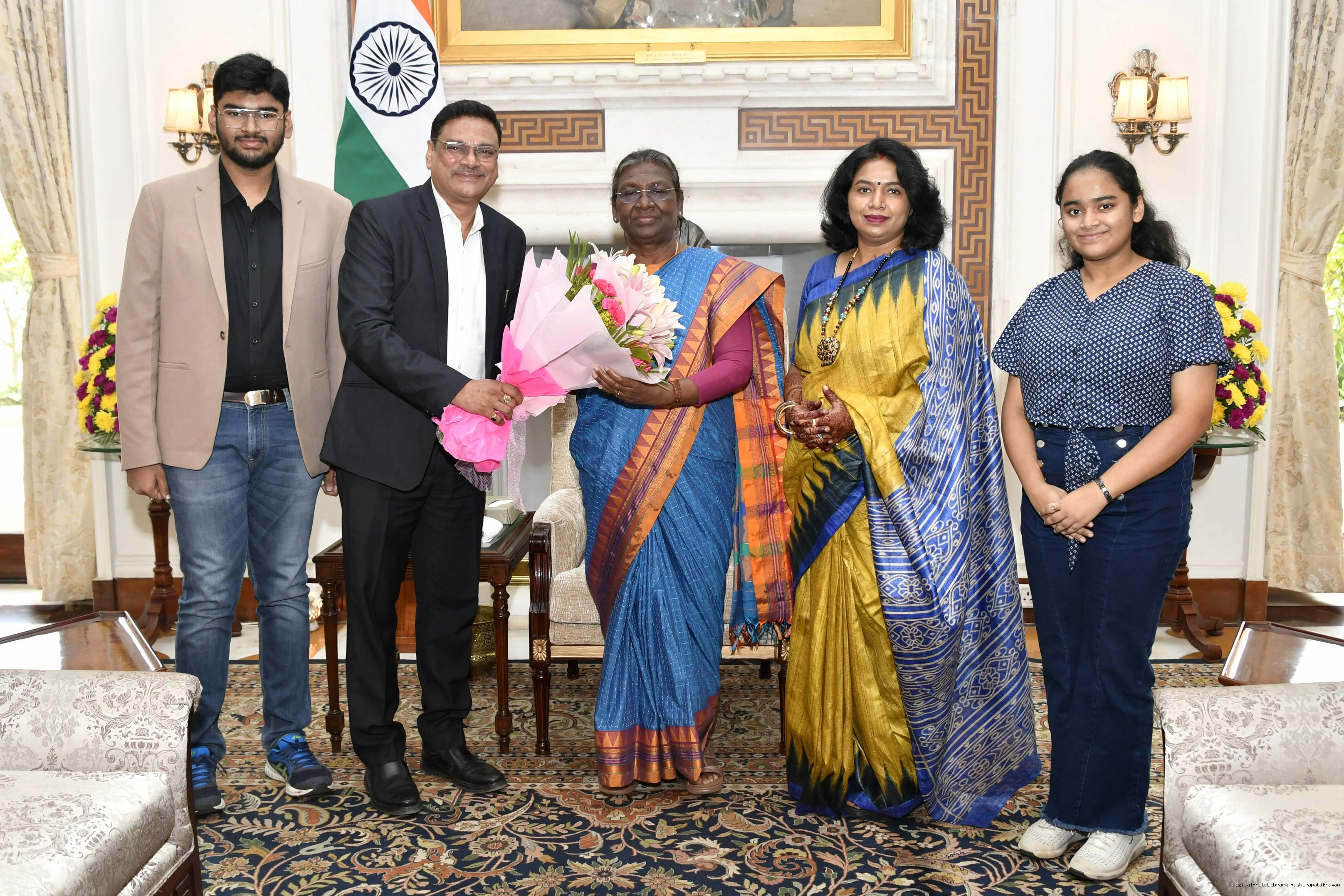 Shri Sandeep Kumar along with his Family meeting with the President of India, Smt. Droupadi Murmu, at Rashtrapati Bhavan on Oct 11, 2022.