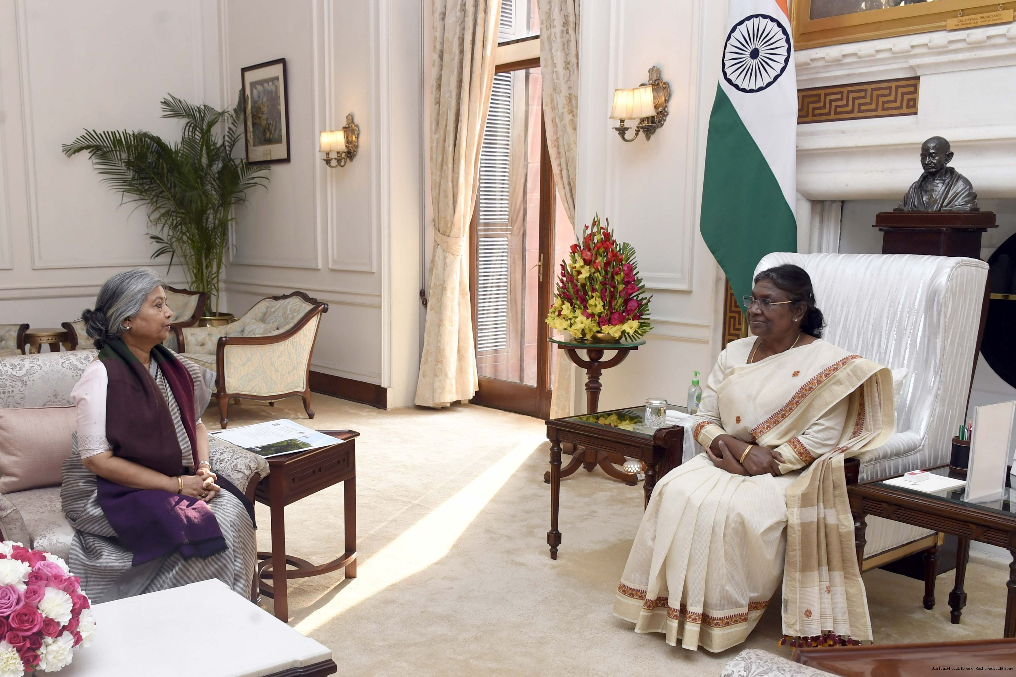 Prof. Sangita Srivastava, Vice Chancellor, University of Allahabad, Prayagraj meeting with the President of India Smt. Droupadi Murmu at Rashtrapati Bhavan on February 16, 2023.