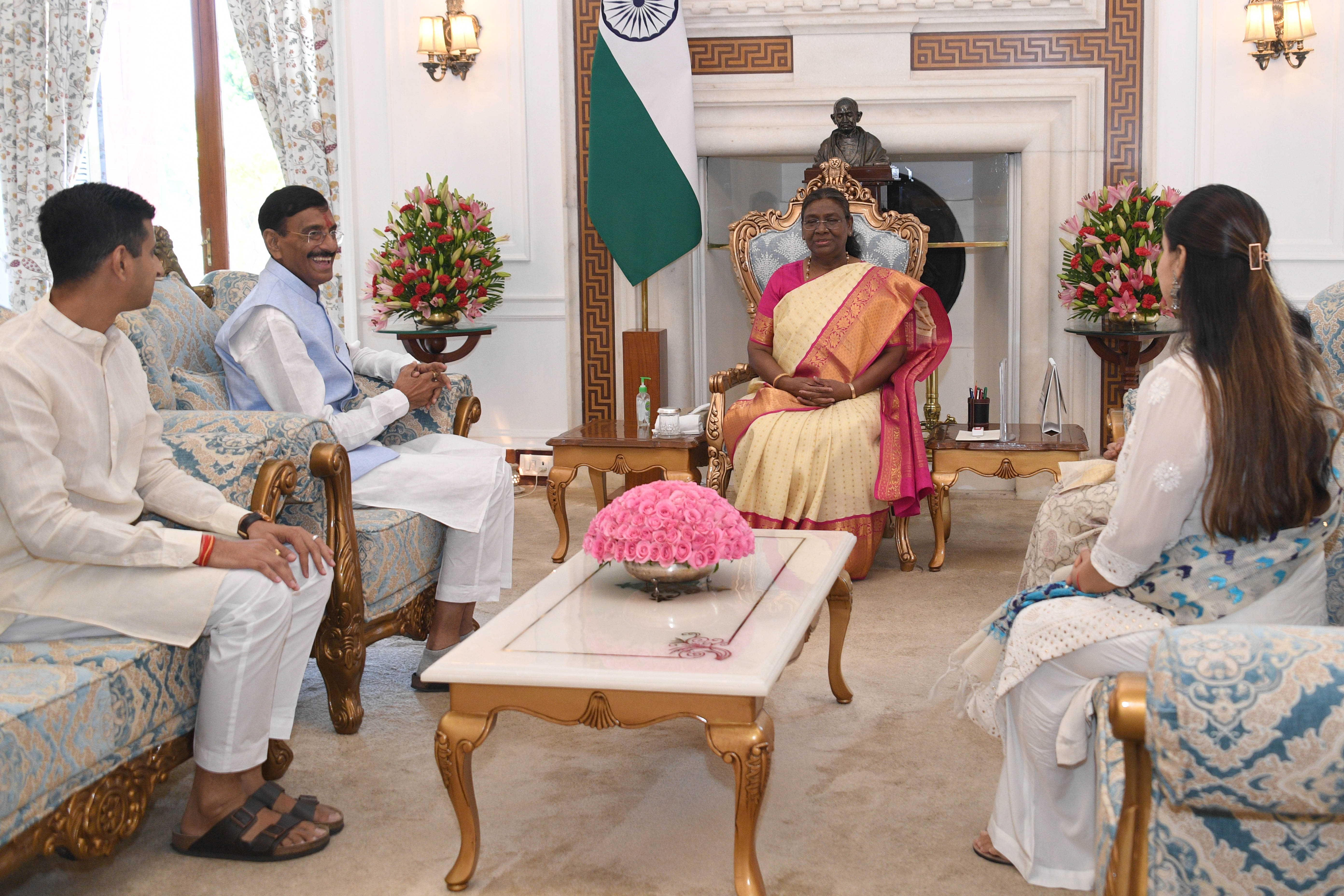 Shri Sanjay Seth, MP (LS) along with family members meeting with the President of India, Smt. Droupadi Murmu, at Rashtrapati Bhavan on Aug 09, 2022.