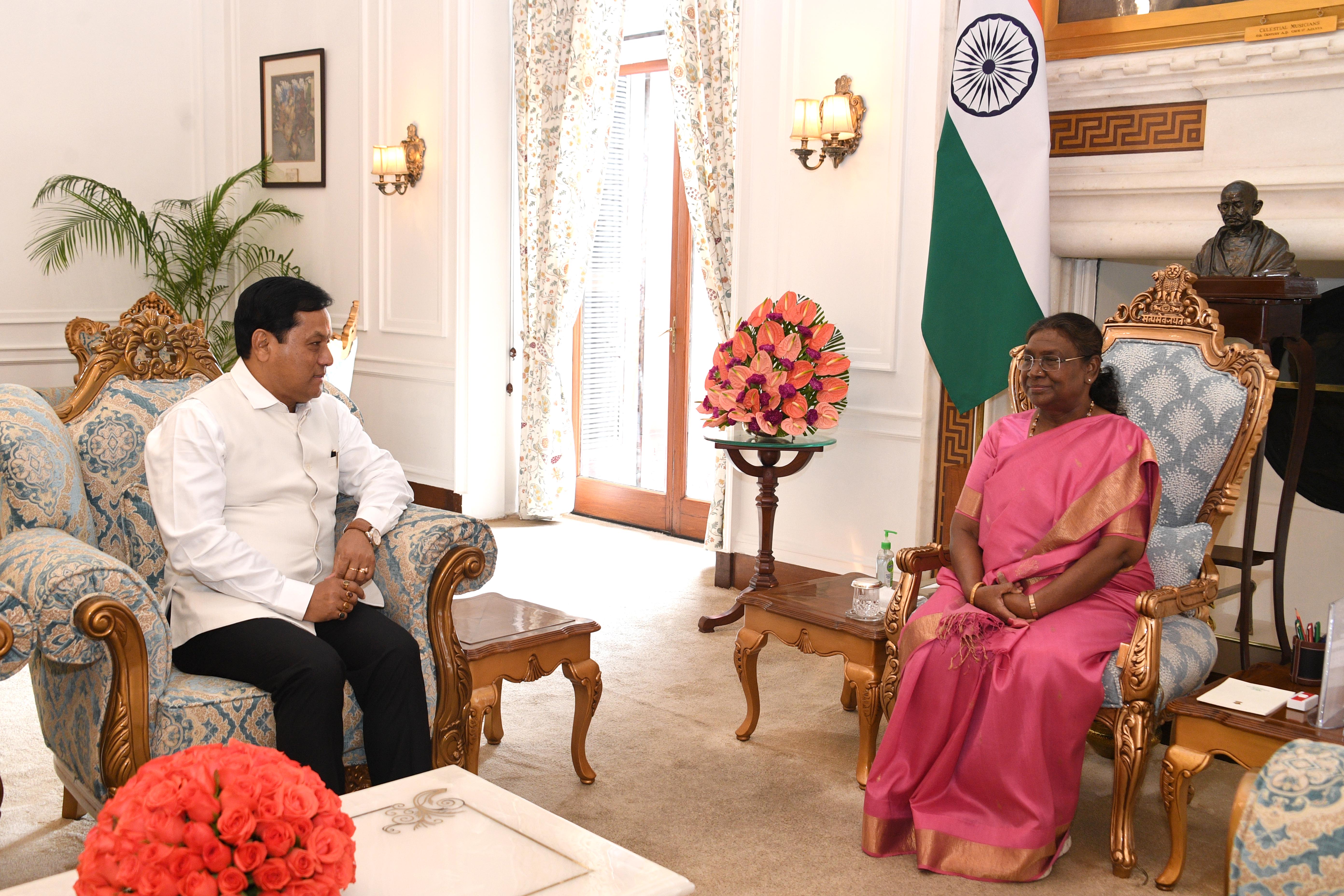The Union Minister for Ports, Shipping and Waterways, Shri Sarbananda Sonowal called on the President of India, Smt Droupadi Murmu at Rashtrapati Bhavan on July 1, 2024.
