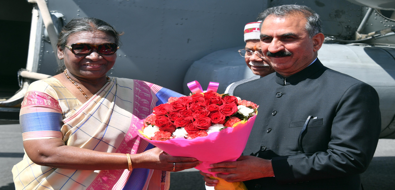 The Governor of Himachal Pradesh, Shri Shiv Pratap Shukla and Chief Minister, Shri Sukhvinder Singh Sukhu received the President of India, Smt. Droupadi Murmu on her arrival at Rasthrapati Niwas, Mashobra on May 04, 2024.