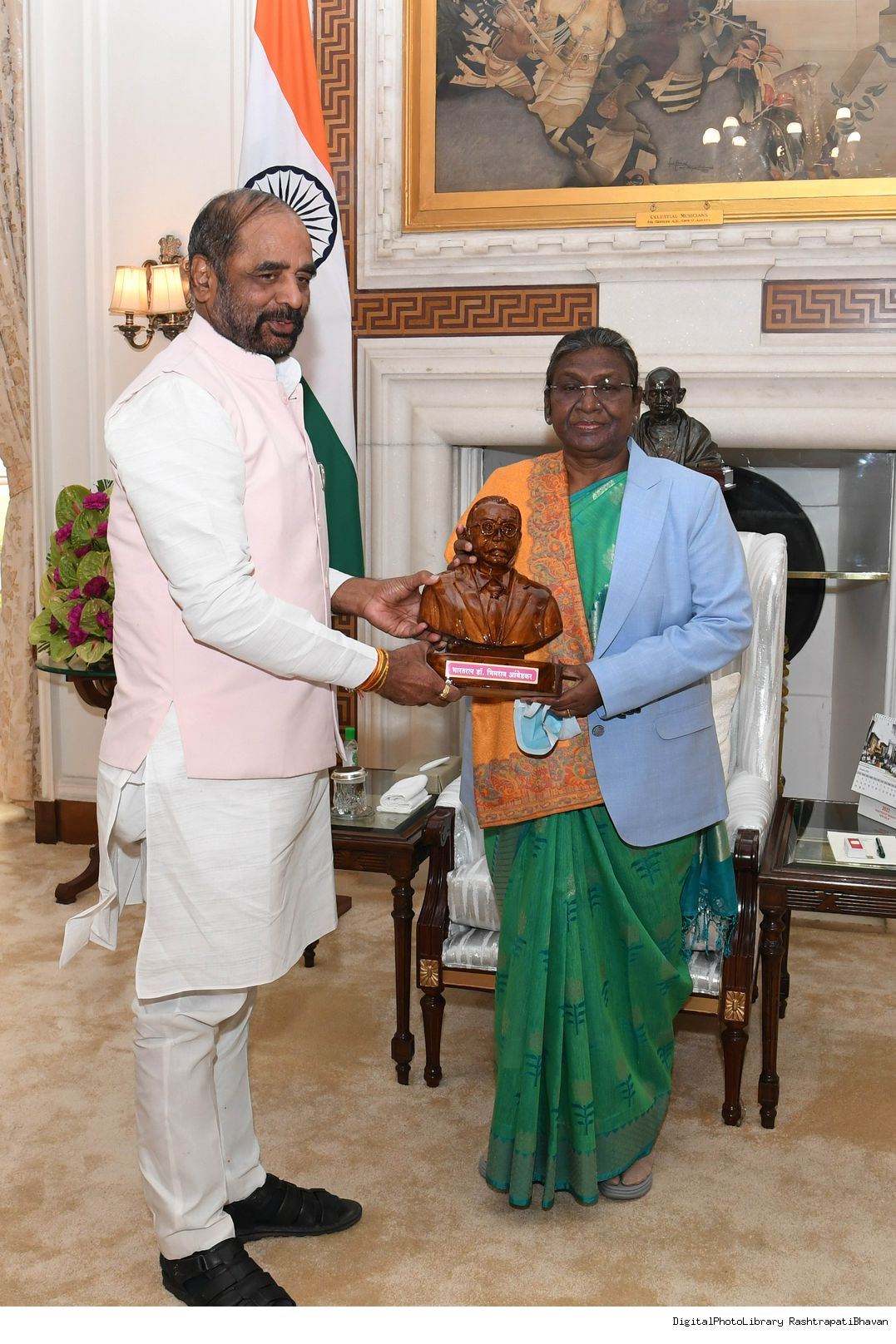 Shri Hansraj Gangaram Ahir, Chairperson, National Commission for Backward Classes meeting with the President of India Smt. Droupadi Murmu at Rashtrapati Bhavan on January 05, 2023