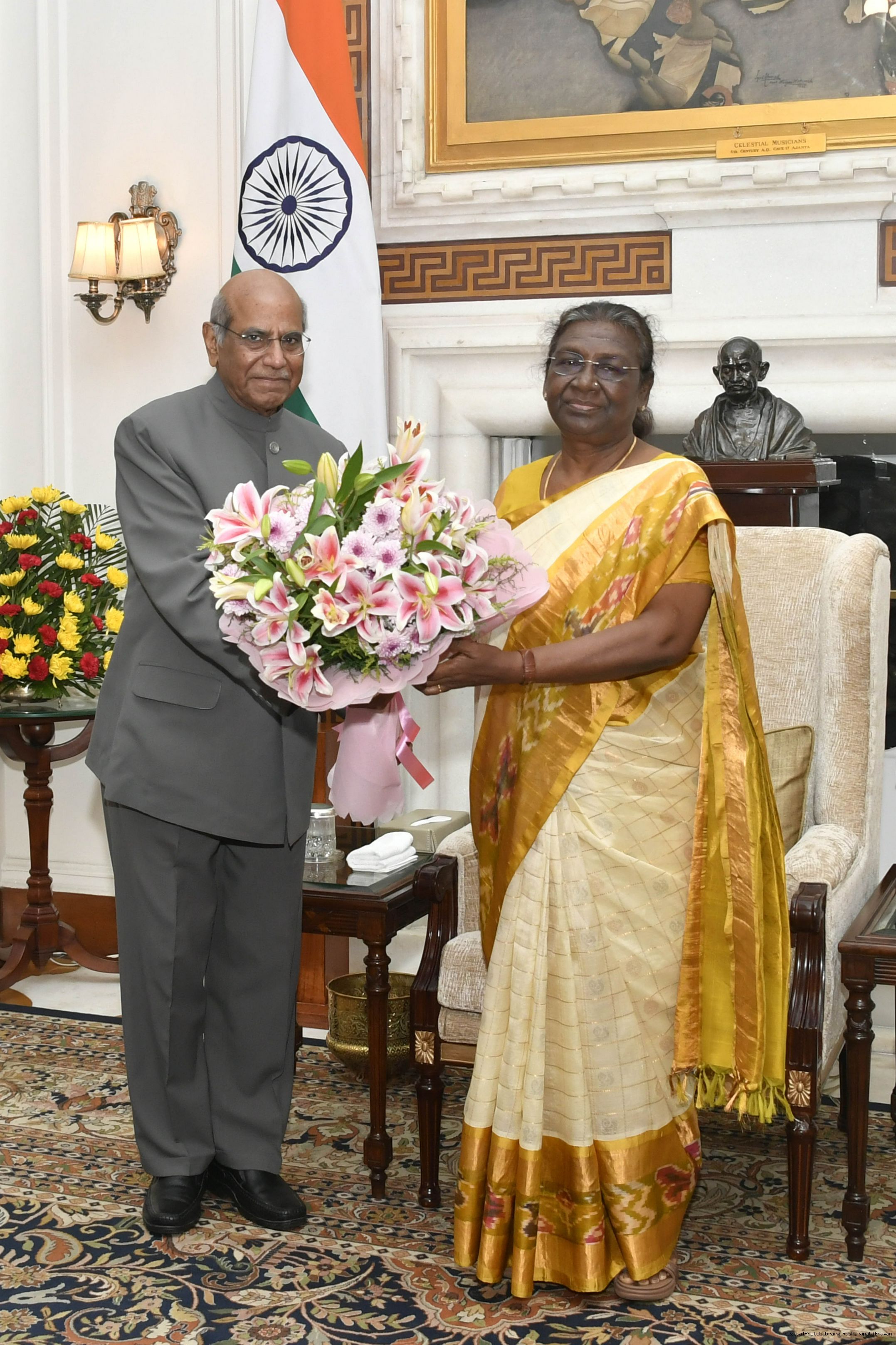 Shri Shyam Saran, former Foreign Secretary President, India International Centre meeting with the President of India, Smt. Droupadi Murmu, at Rashtrapati Bhavan on Sep 22, 2022.