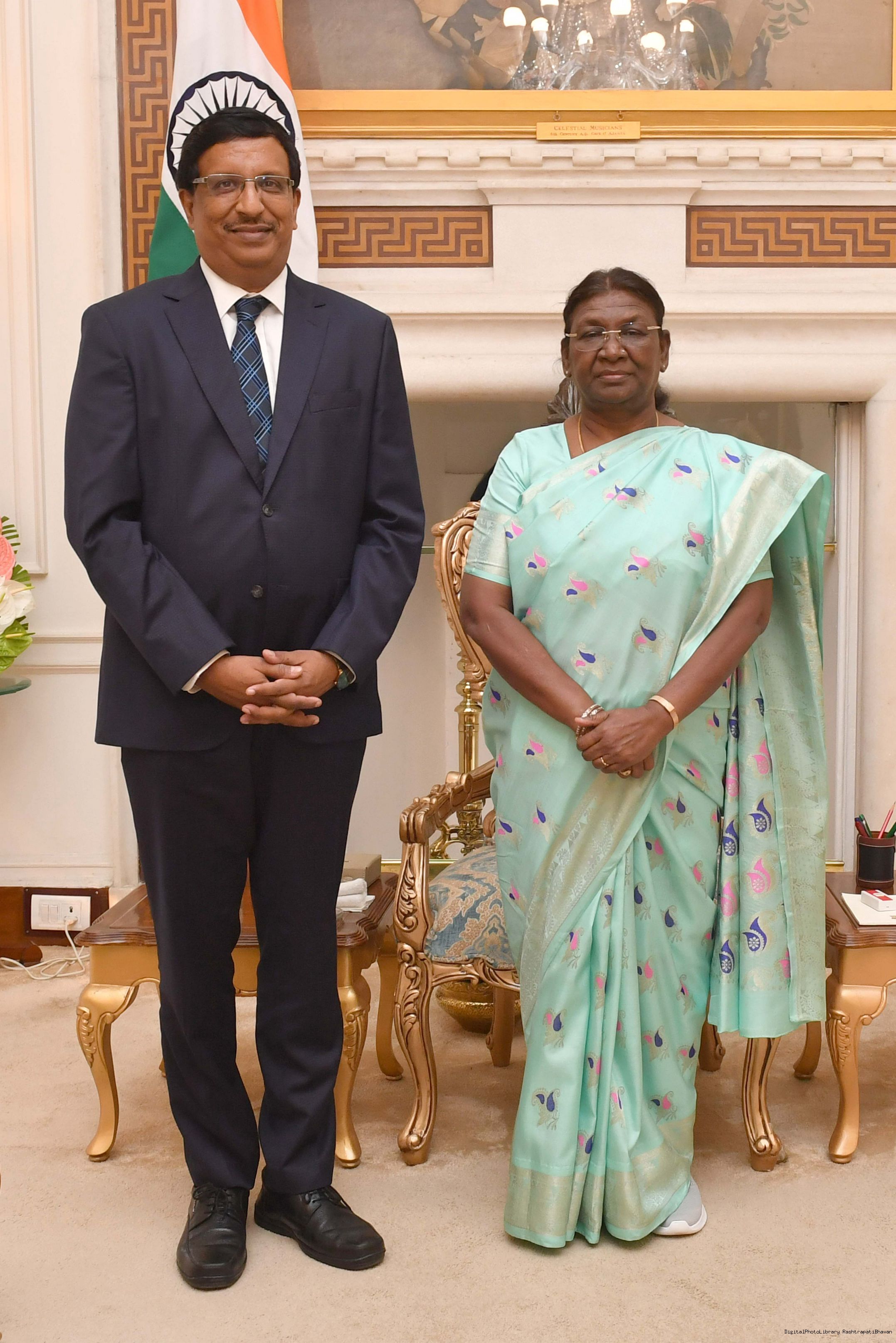 Shri Soma Sankara Prasad, MD CEO, UCO Bank along with his wife meeting with the President of India, Smt. Droupadi Murmu, at Rashtrapati Bhavan on Aug 08, 2022.