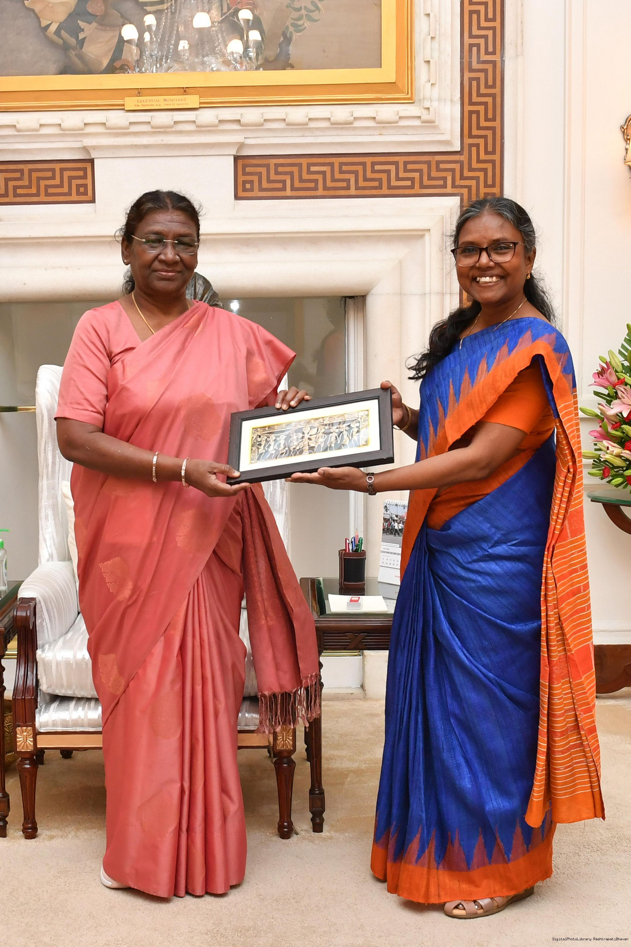 Prof. Sonajharia Minz, Professor, School of Computer System Sciences, Jawaharlal Nehru University, New Delhi meeting with the President of India, Smt. Droupadi Murmu at Rashtrapati Bhavan on July 11, 2023.