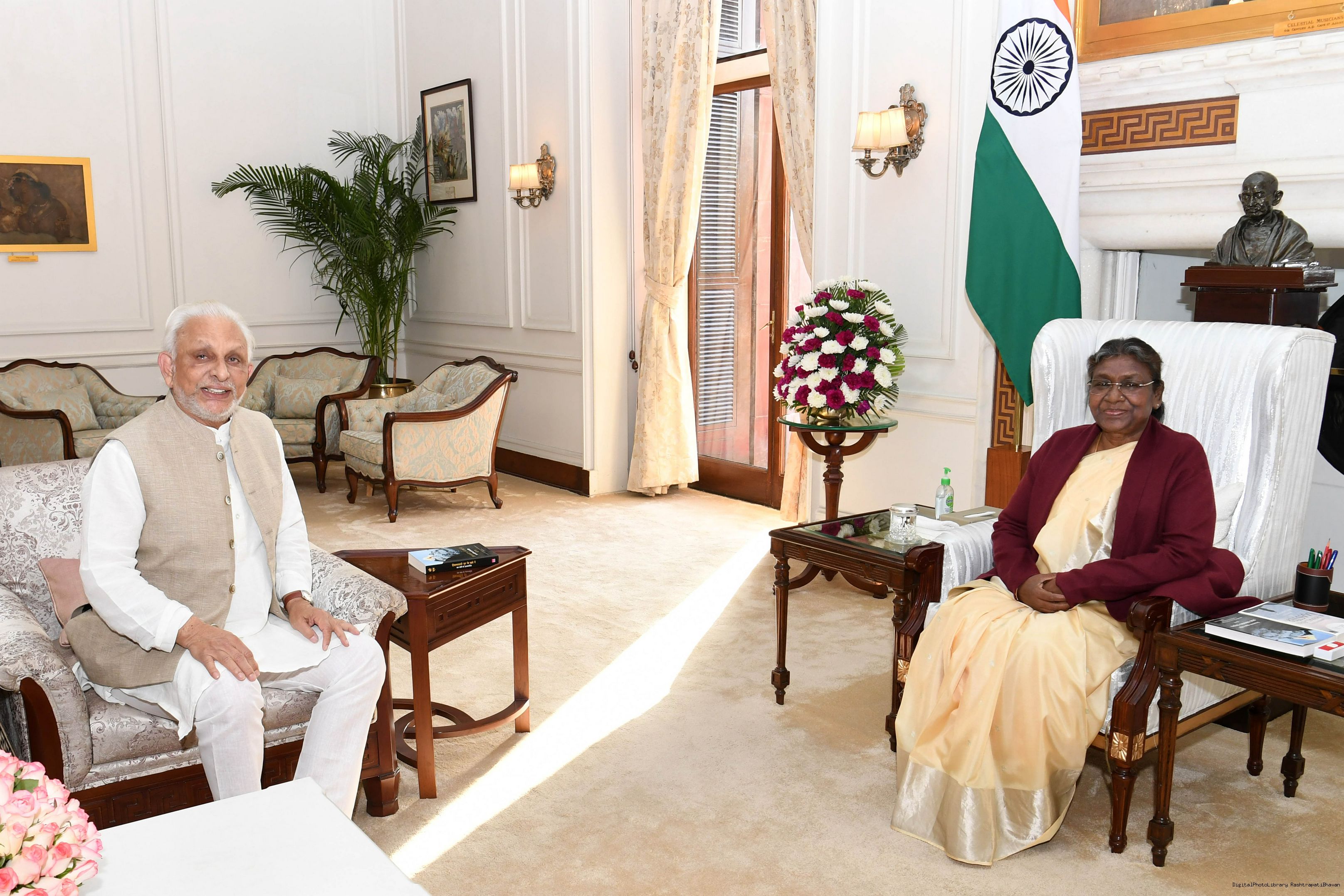 Shri Sri. M (Mumtaz Ali), Founder President, The Satsang Foundation, Bengaluru meeting with the President of India Smt. Droupadi Murmu at Rashtrapati Bhavan on February 14, 2023.