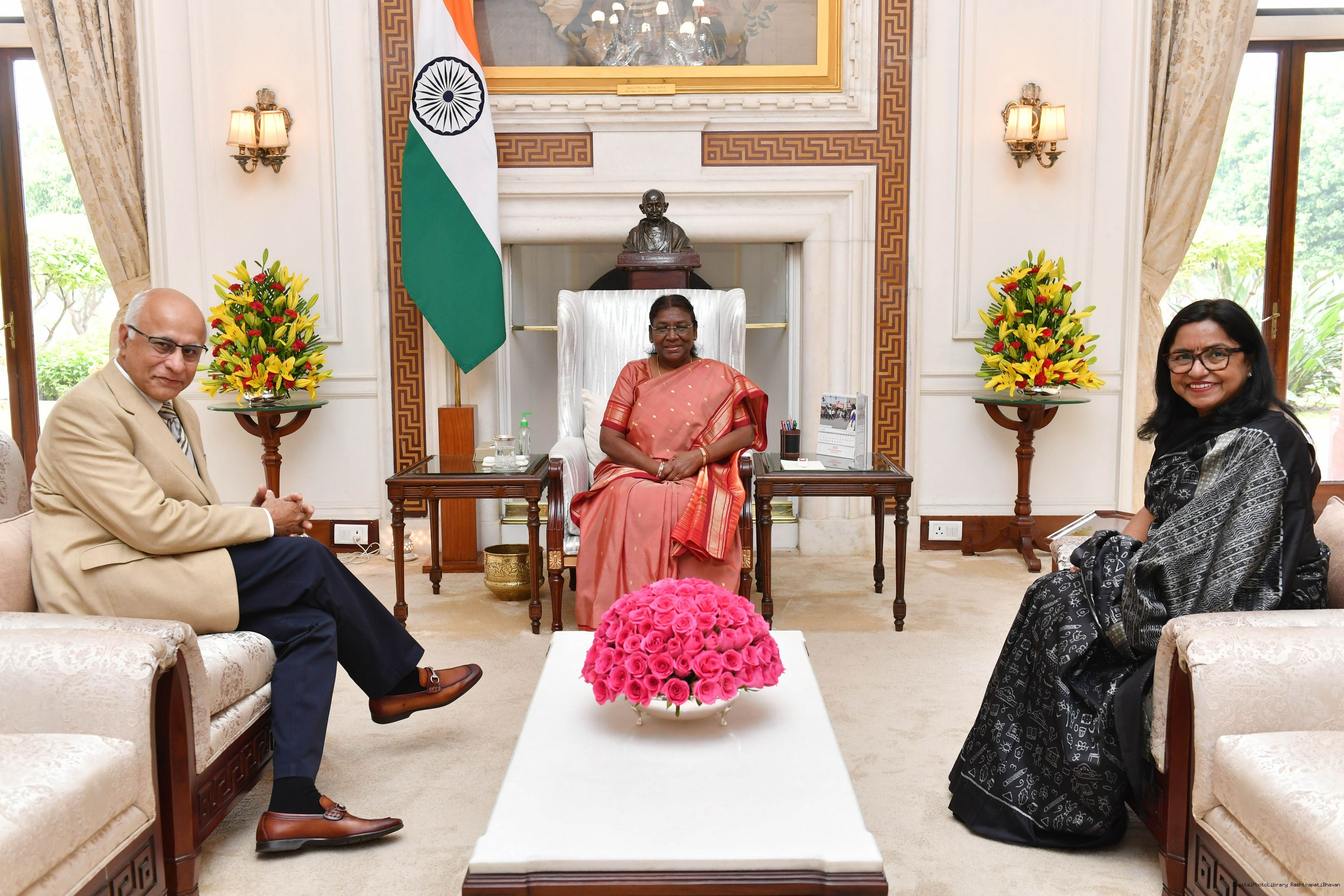 Shri Subroto Bagchi along with Smt. Susmita Bagchi meeting with the President of India, Smt. Droupadi Murmu at Rashtrapati Bhavan on July 08, 2023
