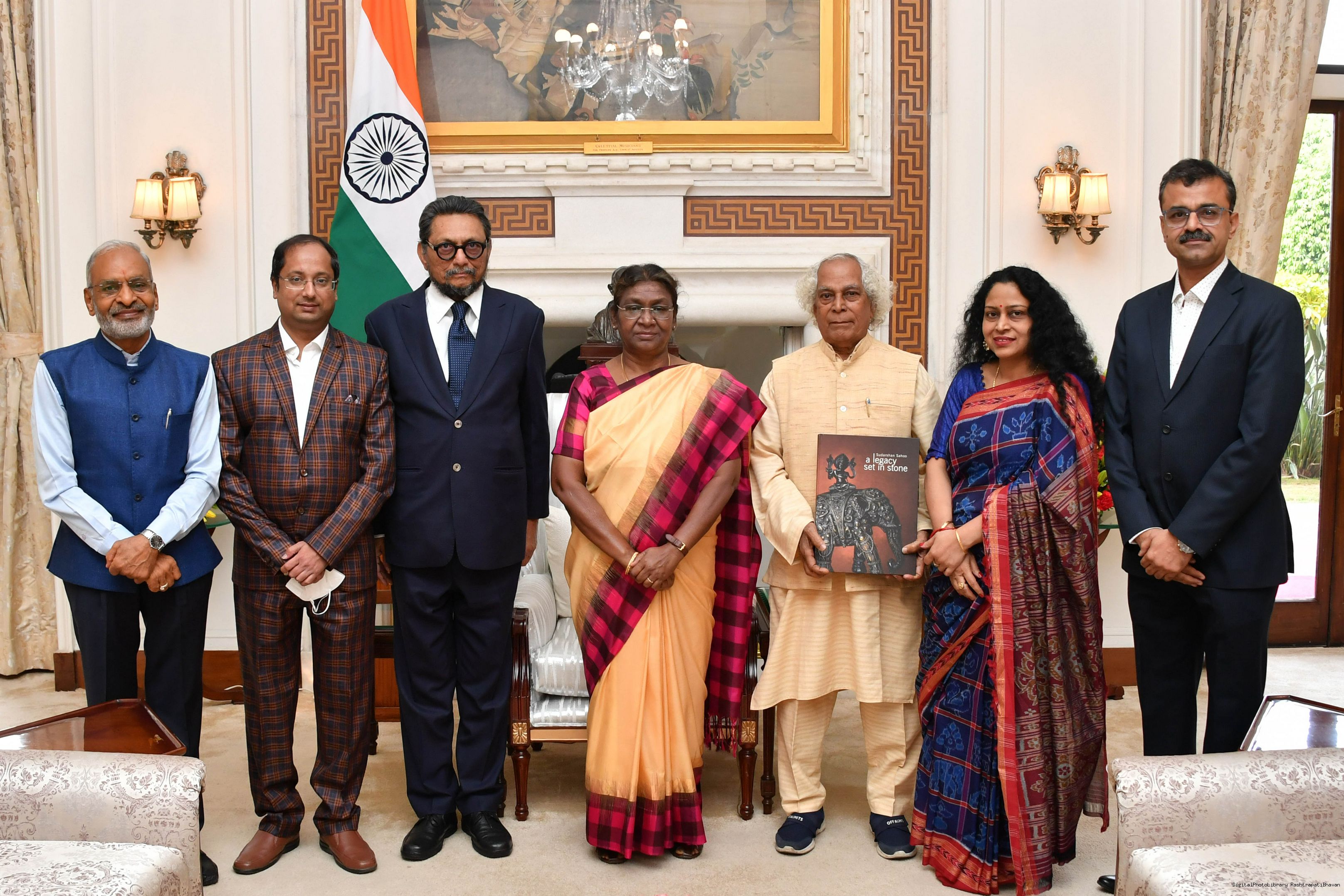 Shri Sudarsan Sahoo, Padma Vibhushan awardee Sculptor from Odisha along with Others meeting with the President of India Smt. Droupadi Murmu at Rashtrapati Bhavan on April 12, 2023