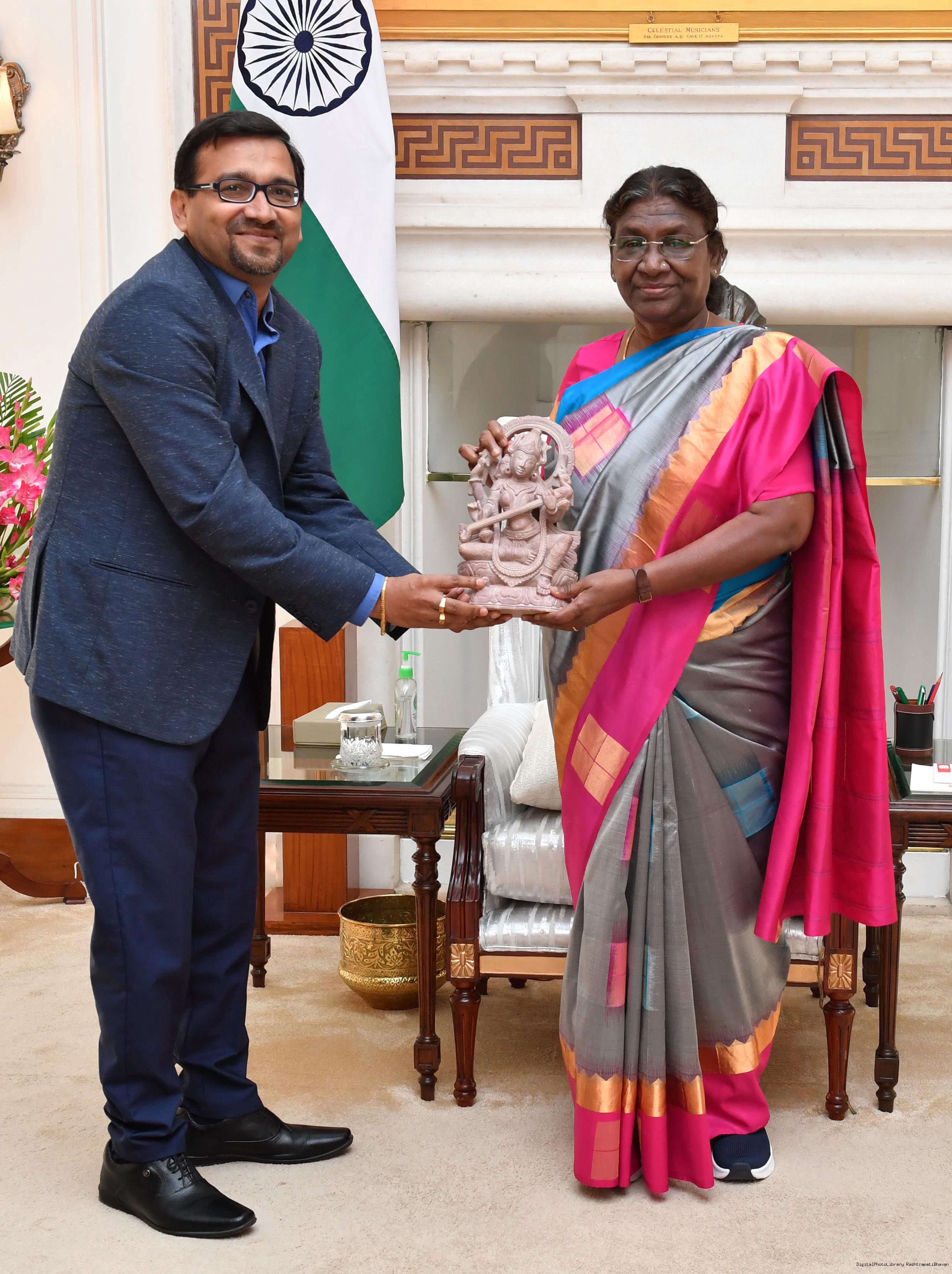 Shri Sudhi Ranjan Mishra, Head-Corporate Affairs, Paradeep Phosphates Limited, Bhubaneswar meeting with the President of India, Smt. Droupadi Murmu at Rashtrapati Bhavan on June 14, 2023.