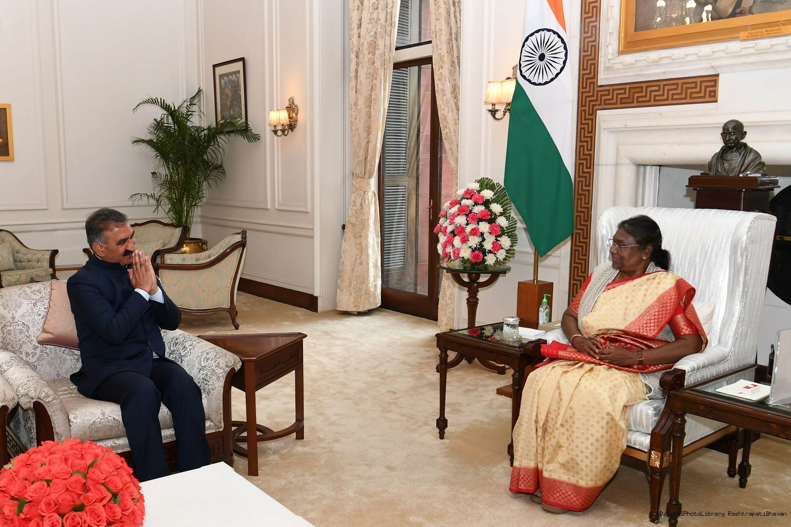 The Chief Minister of Himachal Pradesh, Shri Sukhvinder Singh Sukhu calling on the President of India, Smt. Droupadi Murmu, at Rashtrapati Bhavan on January 23, 2023.