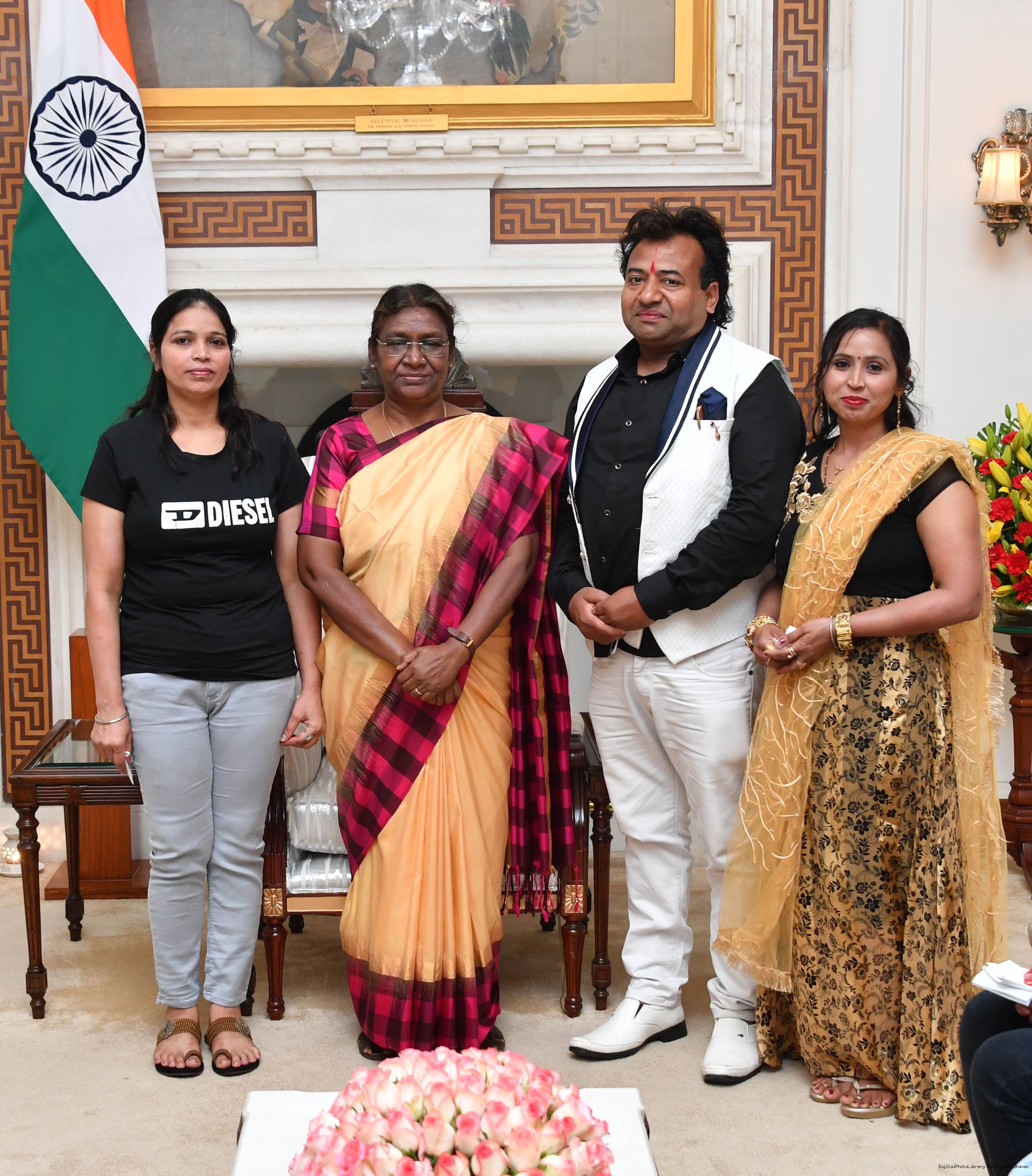 Shri Surendra Kumar, Secretary, Indian Co-operative Livestock Product Import export Society Ltd. along with Others meeting with the President of India Smt. Droupadi Murmu at Rashtrapati Bhavan on April 12, 2023