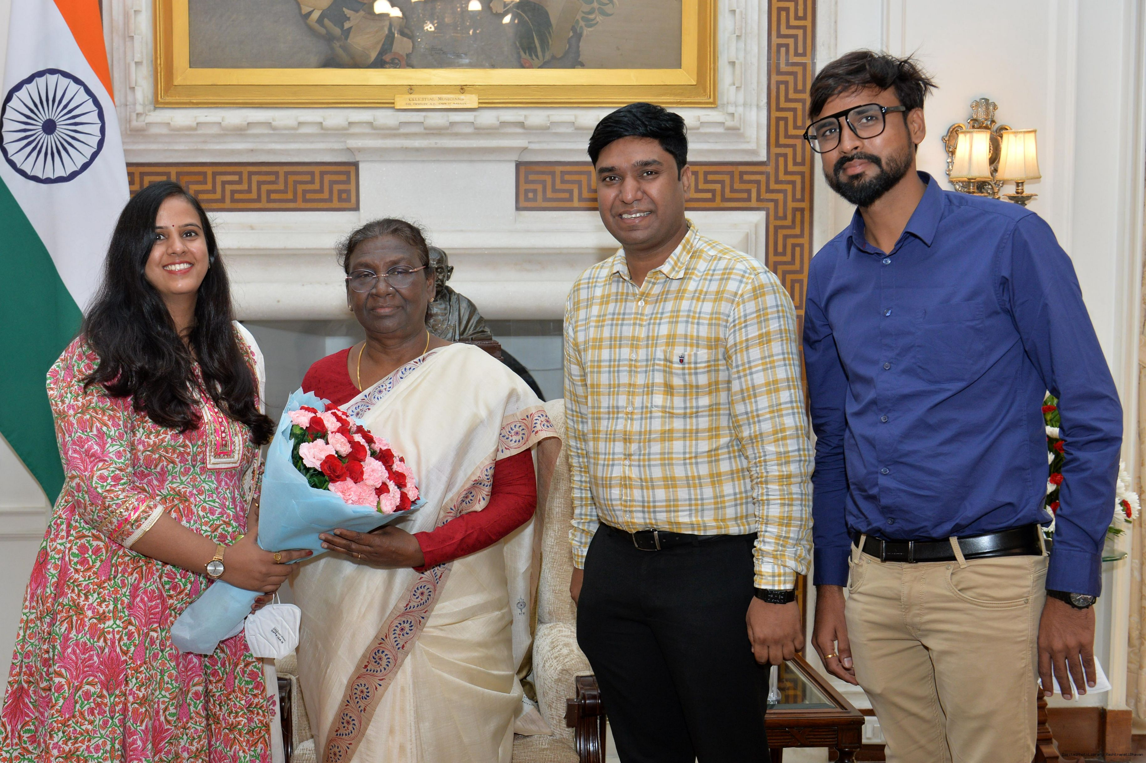 Smt. Sweta Agarwalla along with her family members meeting with the President of India, Smt. Droupadi Murmu, at Rashtrapati Bhavan on Aug 31, 2022.