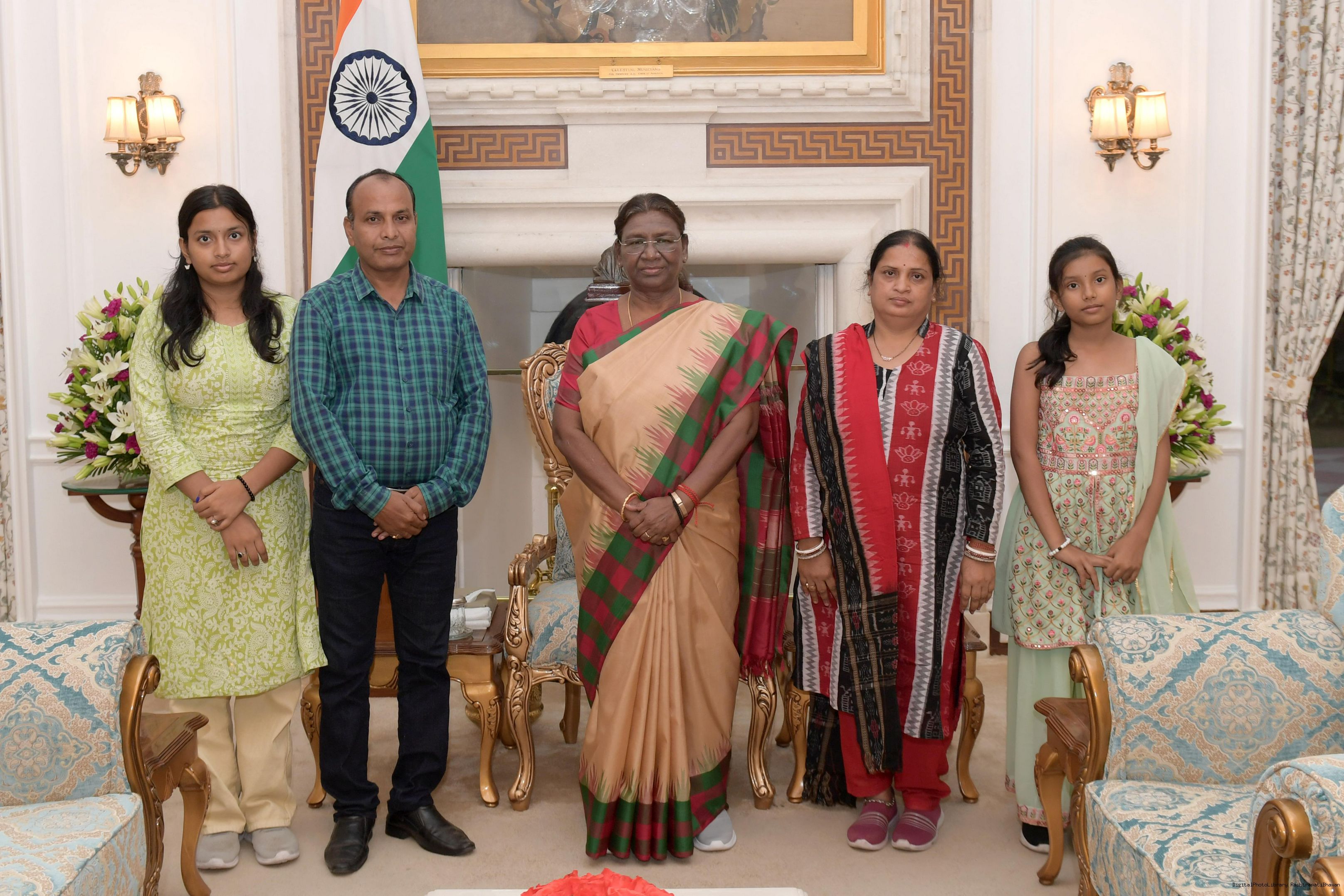 Shri Tapan Kumar Lenka from Rairangpur, Mayurbhanj along with others meeting with the President of India, Smt. Droupadi Murmu at Rashtrapati Bhavan on October 23, 2023