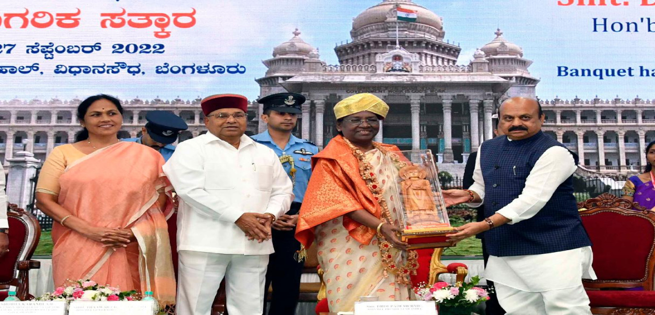 The President of India, Smt. Droupadi Murmu attending a civic reception hosted in her honour by the Government of Karnataka, at Vidhana Soudha, in Bengaluru on September 27, 2022.