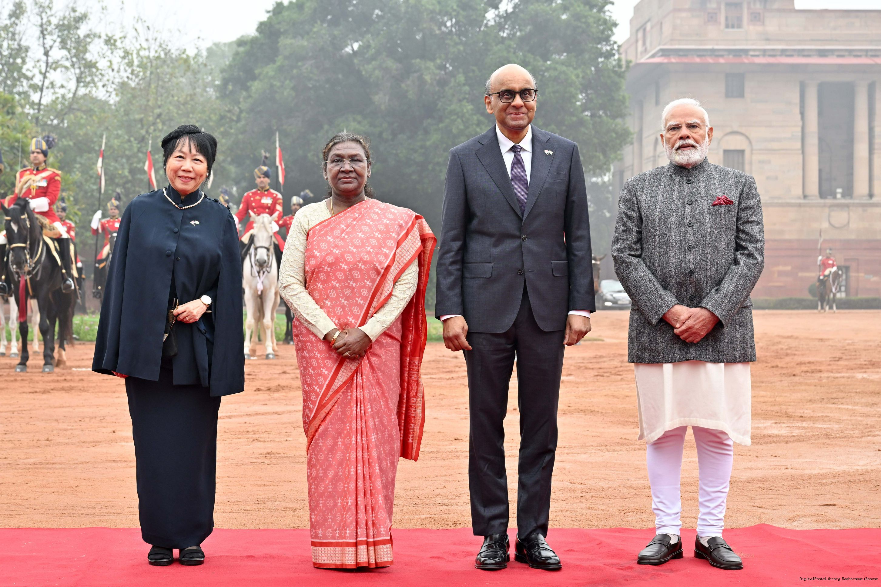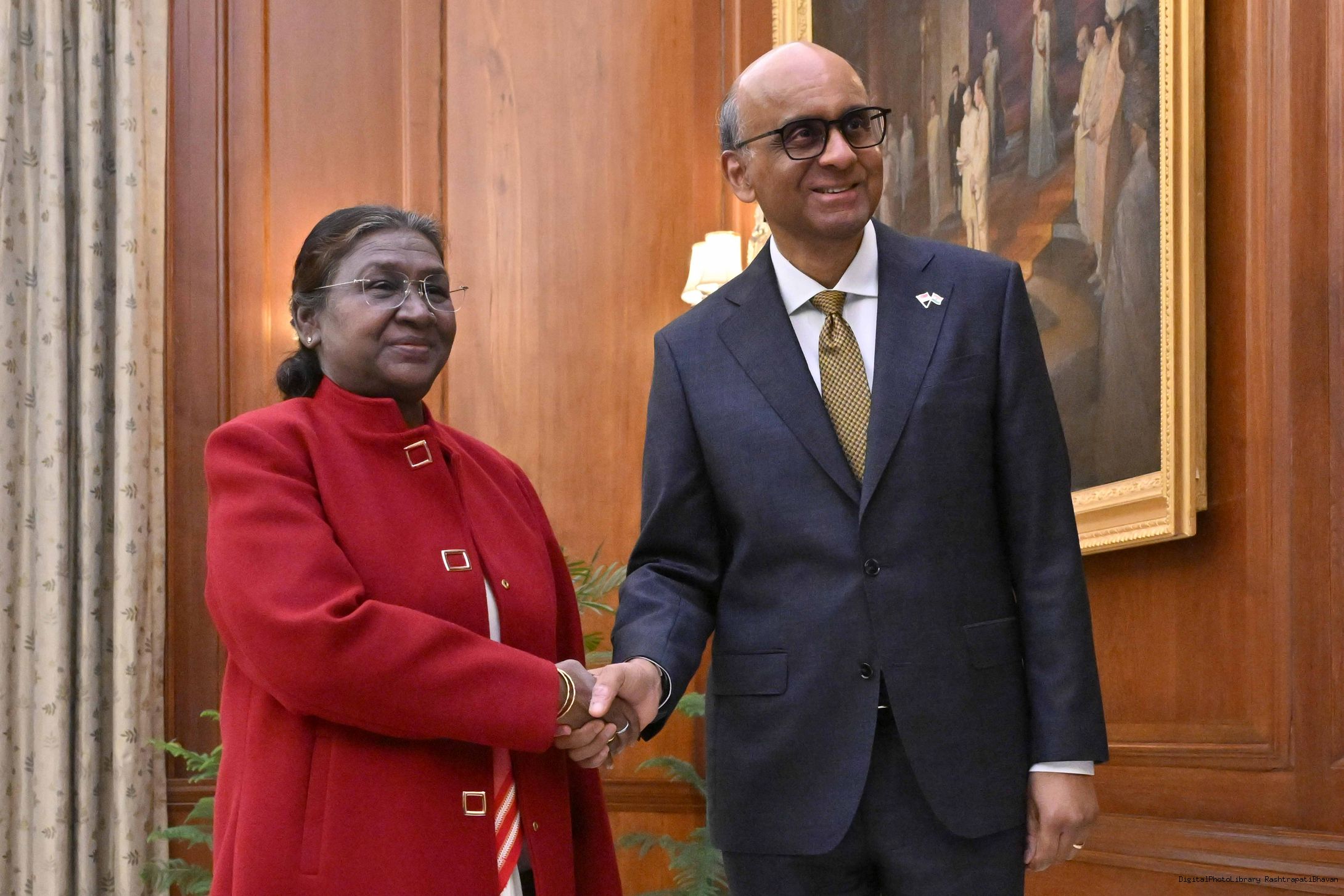The President of India, Smt Droupadi Murmu received H.E. Mr Tharman Shanmugaratnam, President of the Republic of Singapore at Rashtrapati Bhavan, New Delhi on January 16, 2025.