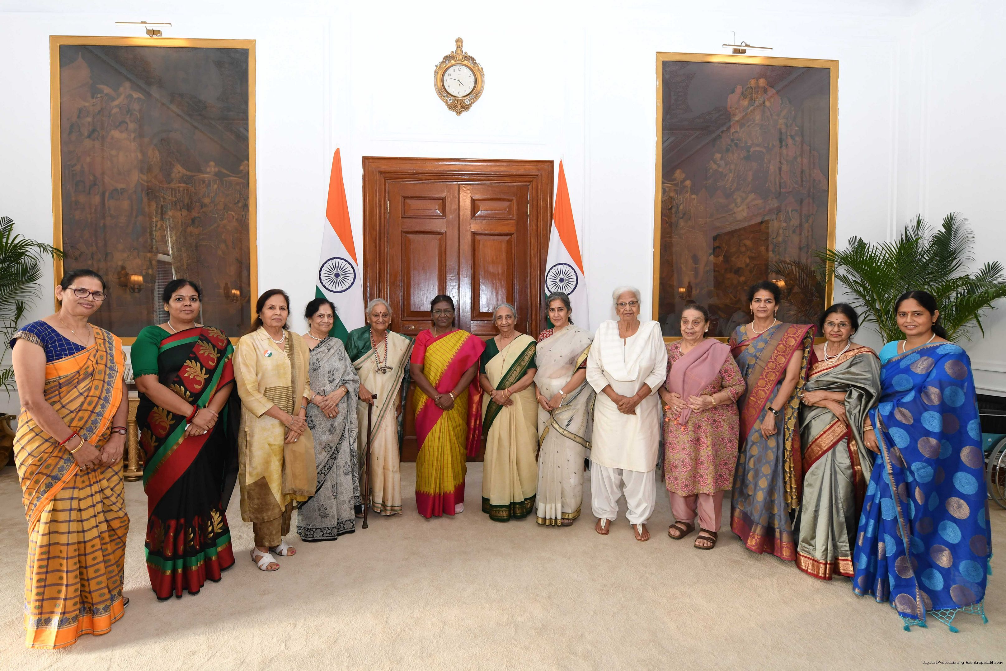 Dr. V. Mohini Giri, Chairperson, War Widows Association along with other meeting with the President of India, Smt. Droupadi Murmu at Rashtrapati Bhavan on September 12, 2023.
