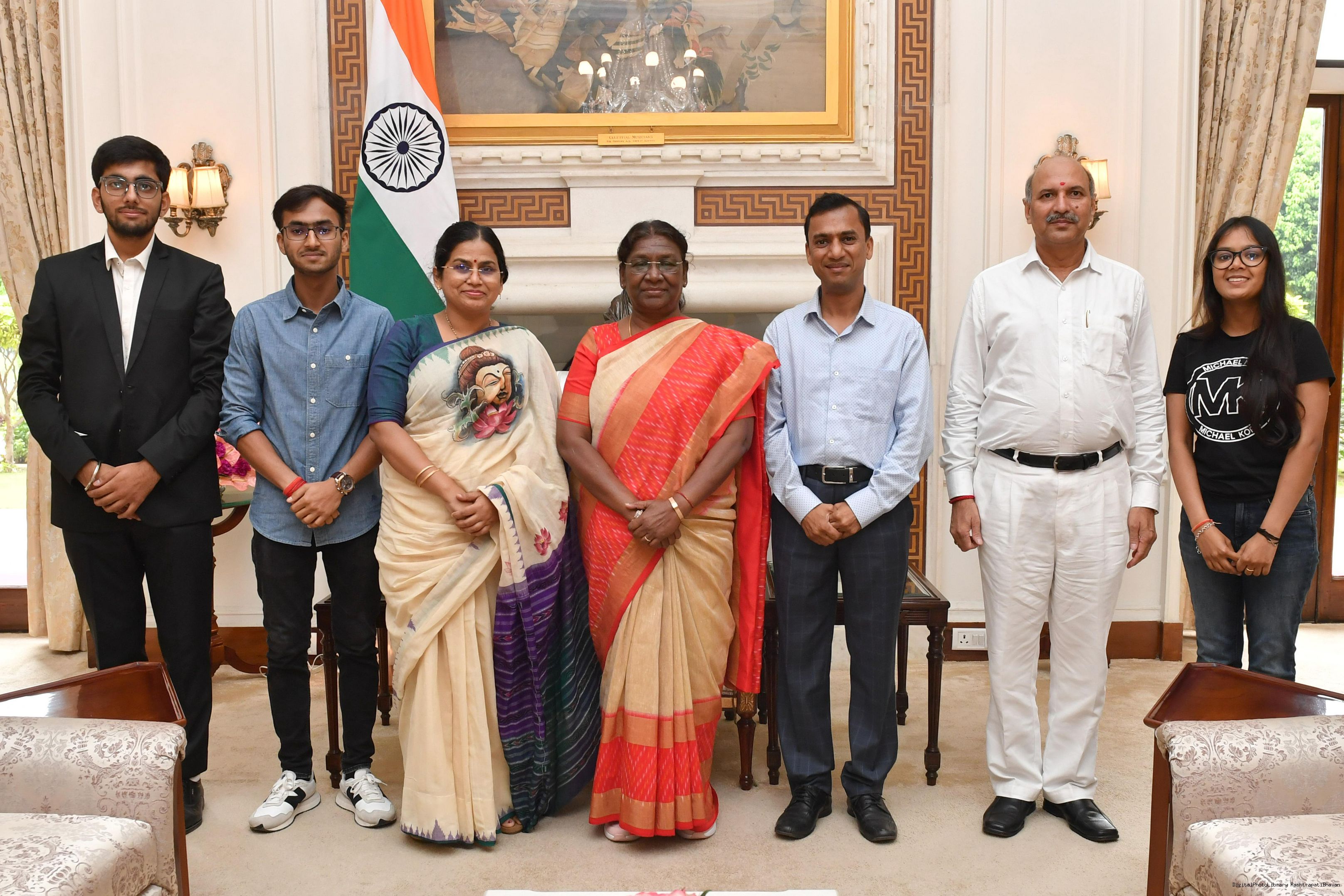 Dr. Vijaya Lakshmi Mohanty, Director, Human Resource Development Center (HRDC) along with others meeting with the President of India, Smt. Droupadi Murmu at Rashtrapati Bhavan on July 17, 2023.