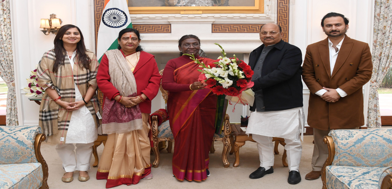 Smt. Veena Devi, MP (Lok Sabha) along others meeting with the President of India, Smt. Droupadi Murmu at Rashtrapati Bhavan on January 3, 2024.