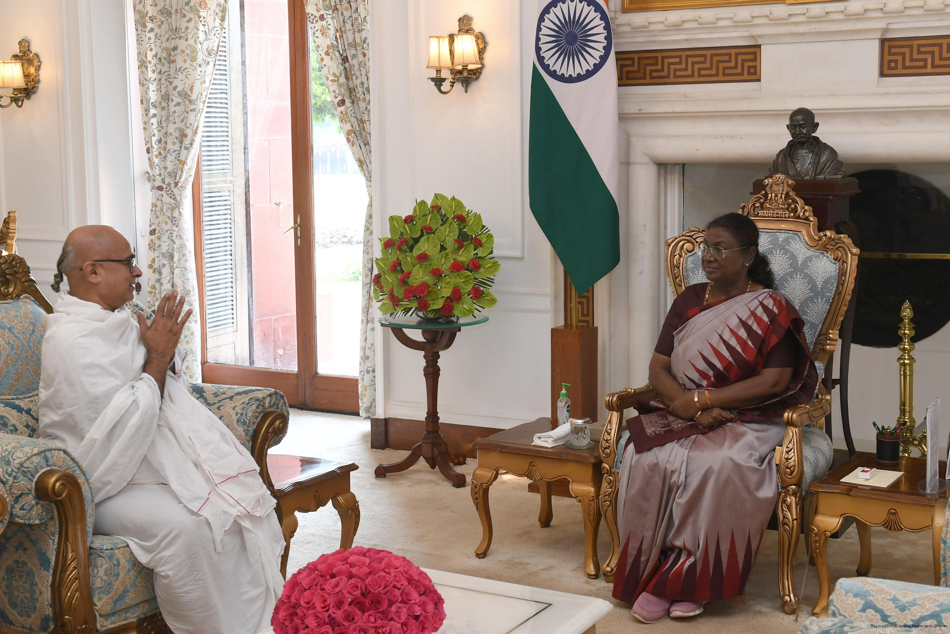 Pandit Vidyasimha Acharya Mahuli meeting with the President of India Smt. Droupadi Murmu at Rashtrapati Bhavan on October 29, 2024.