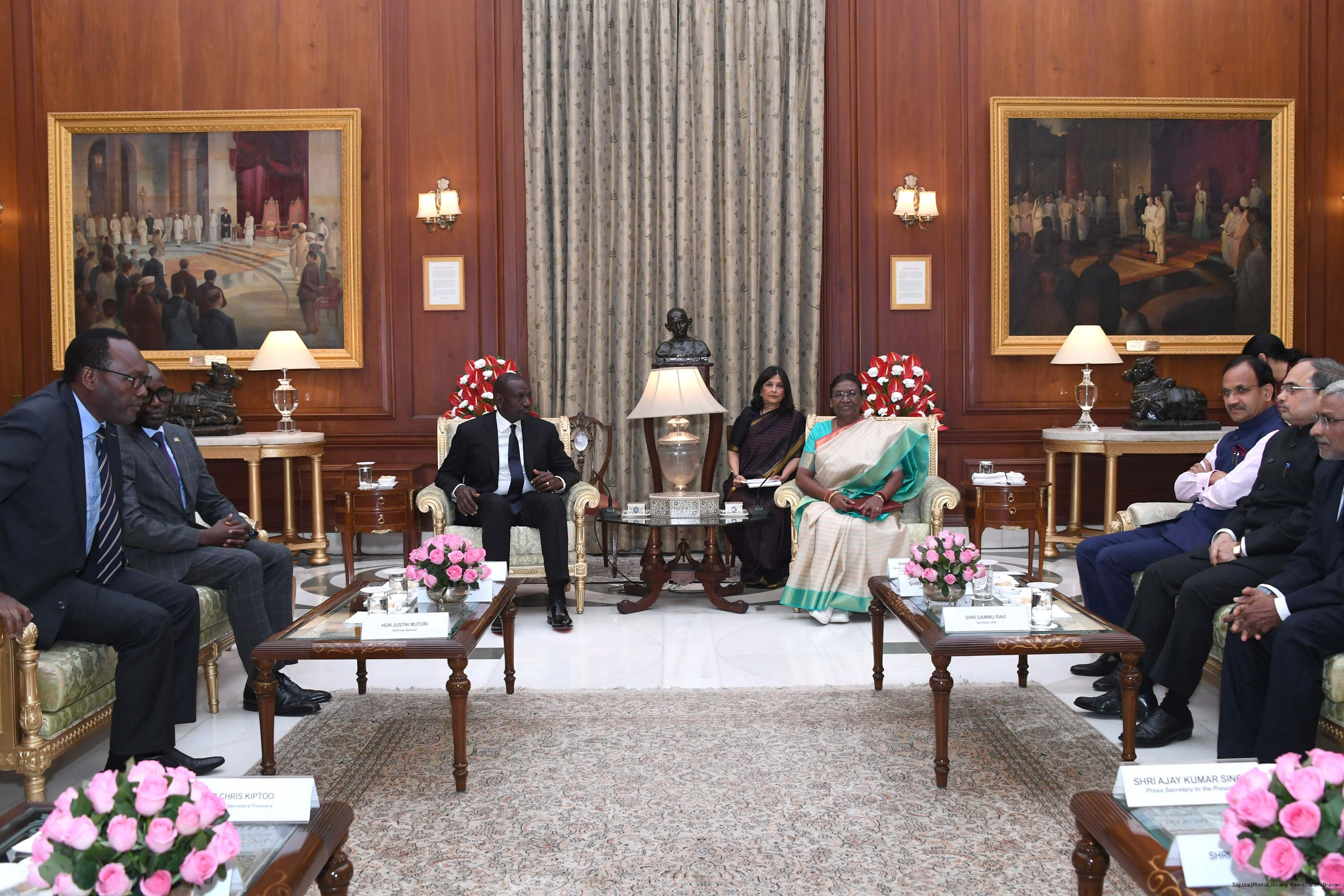 The President of India, Smt Droupadi Murmu called on H.E. Dr William Samoei Ruto, the President of the Republic of Kenya at Rashtrapati Bhavan on December 5, 2023.