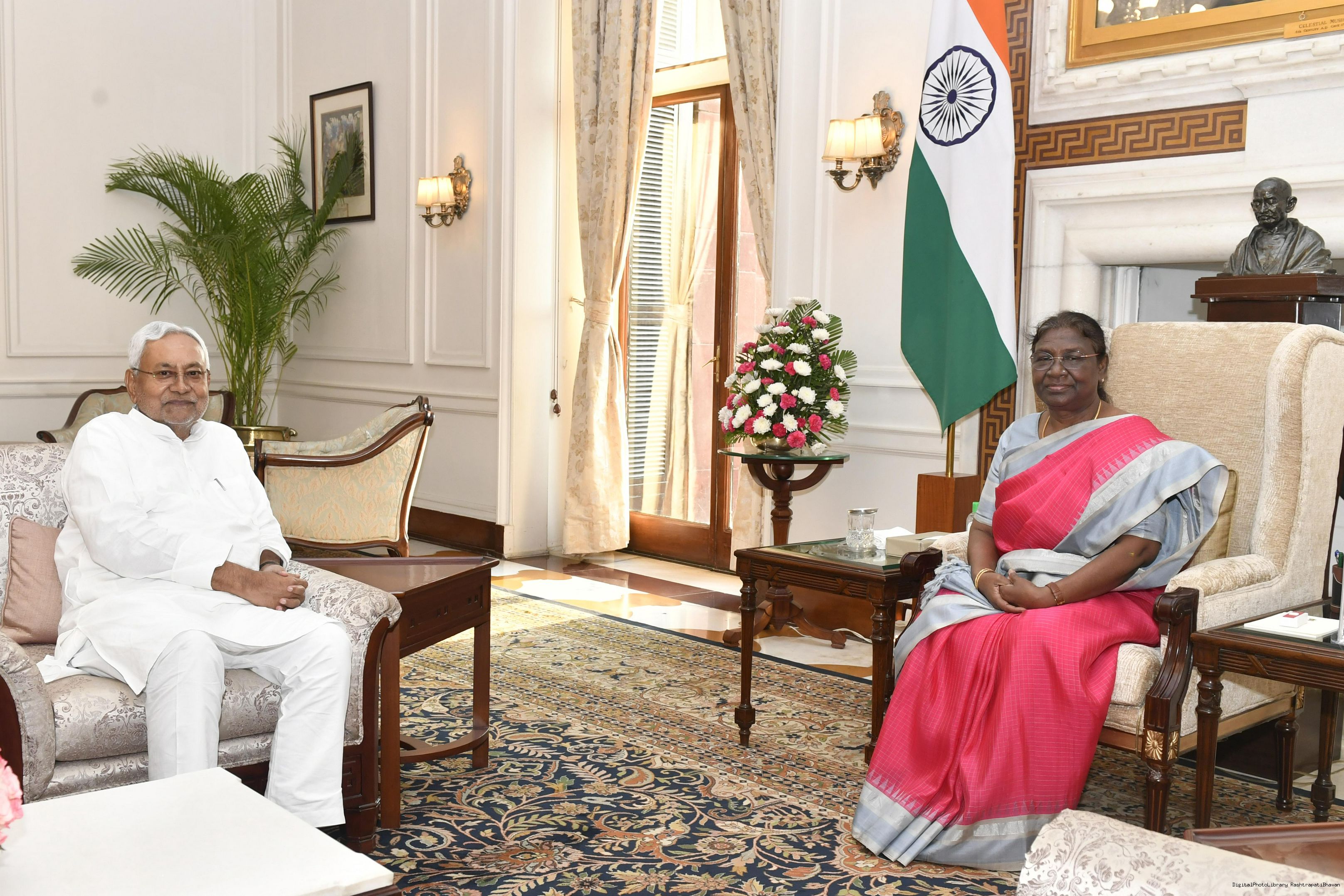 The Chief Minister of Bihar, Shri Nitish Kumar calling on the President of India, Smt. Droupadi Murmu, at Rashtrapati Bhavan on September 07, 2022.