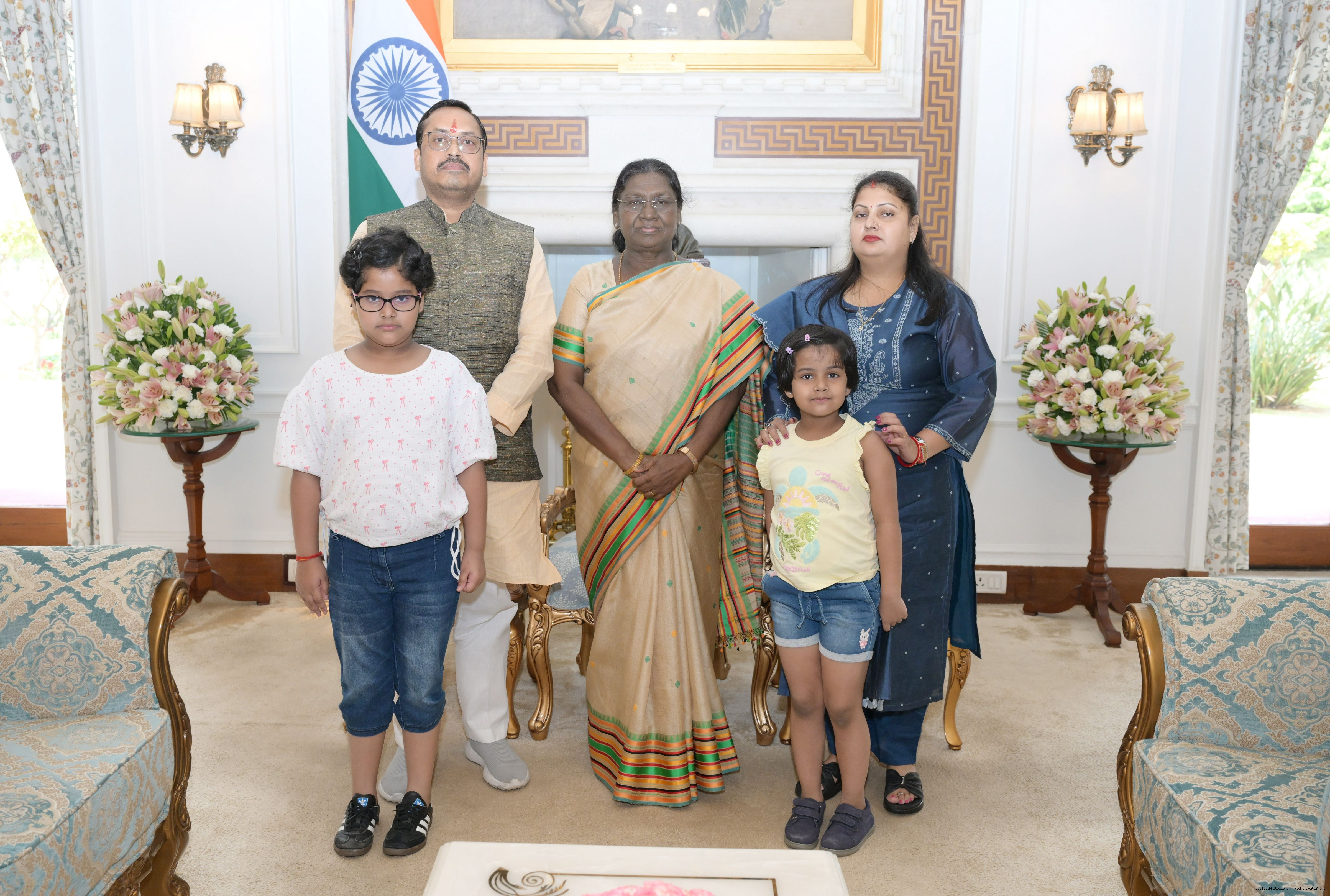 Shri Sunil Kumar, MP (LS) from Valmiki Nagar, Bihar along family members meeting with the President of India Smt Droupadi Murmu at Rashtrapati Bhavan on April 1, 2026.