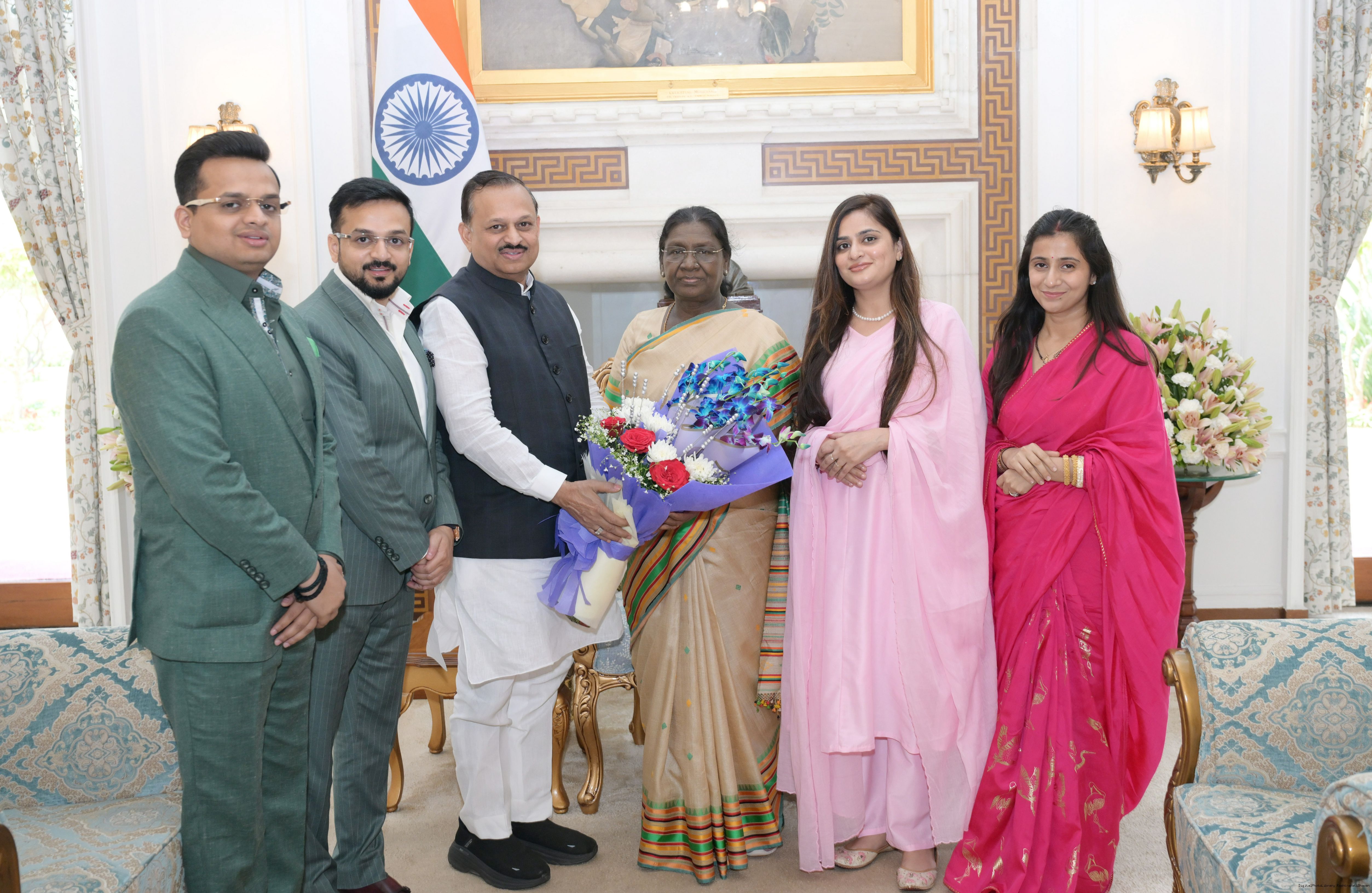 Shri Ramesh Awasthi, MP (LS) from Kanpur along with son Shri Sachin Awasthi and others meeting with the President of India Smt Droupadi Murmu at Rashtrapati Bhavan on April 2, 2026.