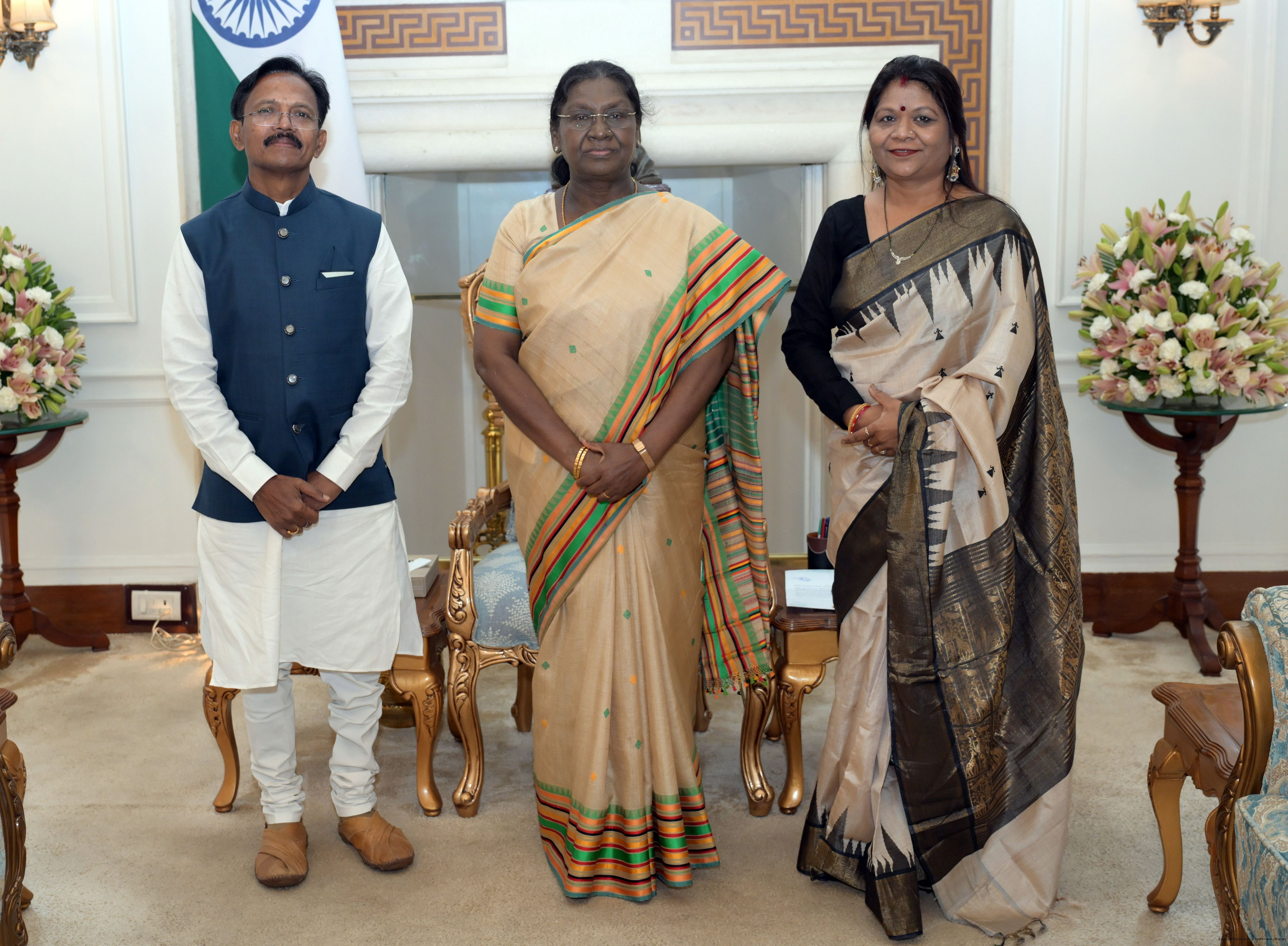 Shri Balabhadra Majhi, MP (LS) from Babarangpur, Odisha along with family members meeting with the President of India Smt Droupadi Murmu at Rashtrapati Bhavan on April 1, 2026.