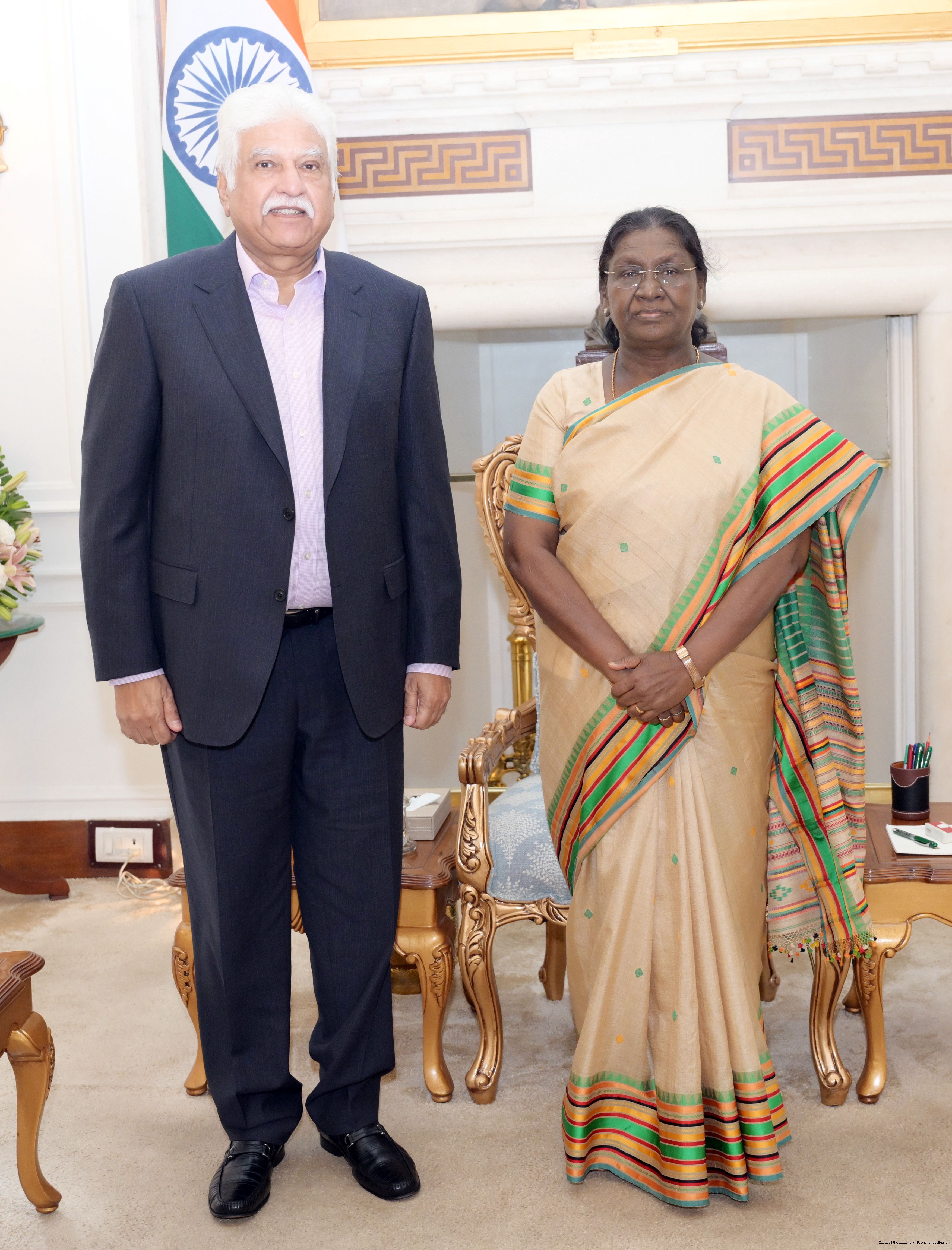 Shri Rakesh Bharti Mittal, Vice Chairman, Bharti Enterprises meeting with the President of India Smt Droupadi Murmu at Rashtrapati Bhavan on April 2, 2026.
