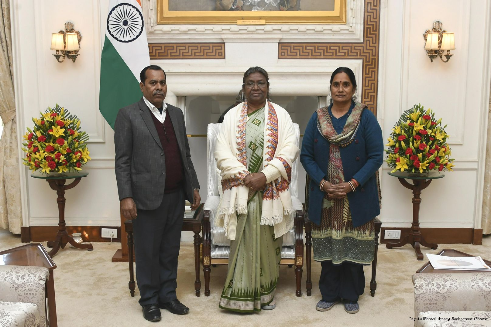 Smt. Asha Devi and Shri Badrinath Singh, parents of Nirbhaya and Founders of Nirbhaya Jyoti Trust meeting with the President of India Smt. Droupadi Murmu at Rashtrapati Bhavan on January 17, 2023.