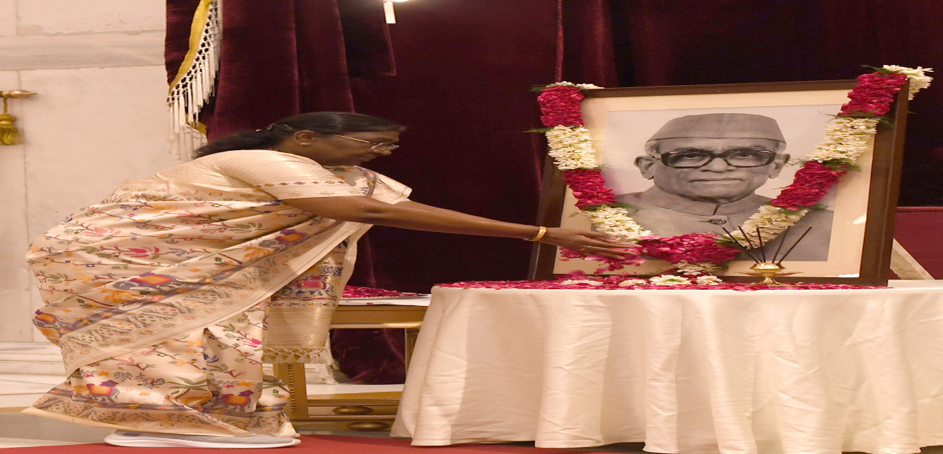 The President of India, Smt Droupadi Murmu paid floral tributes to Shri Neelam Sanjiva Reddy, former President of India, on his birth anniversary at Rashtrapati Bhavan on May 19, 2024.