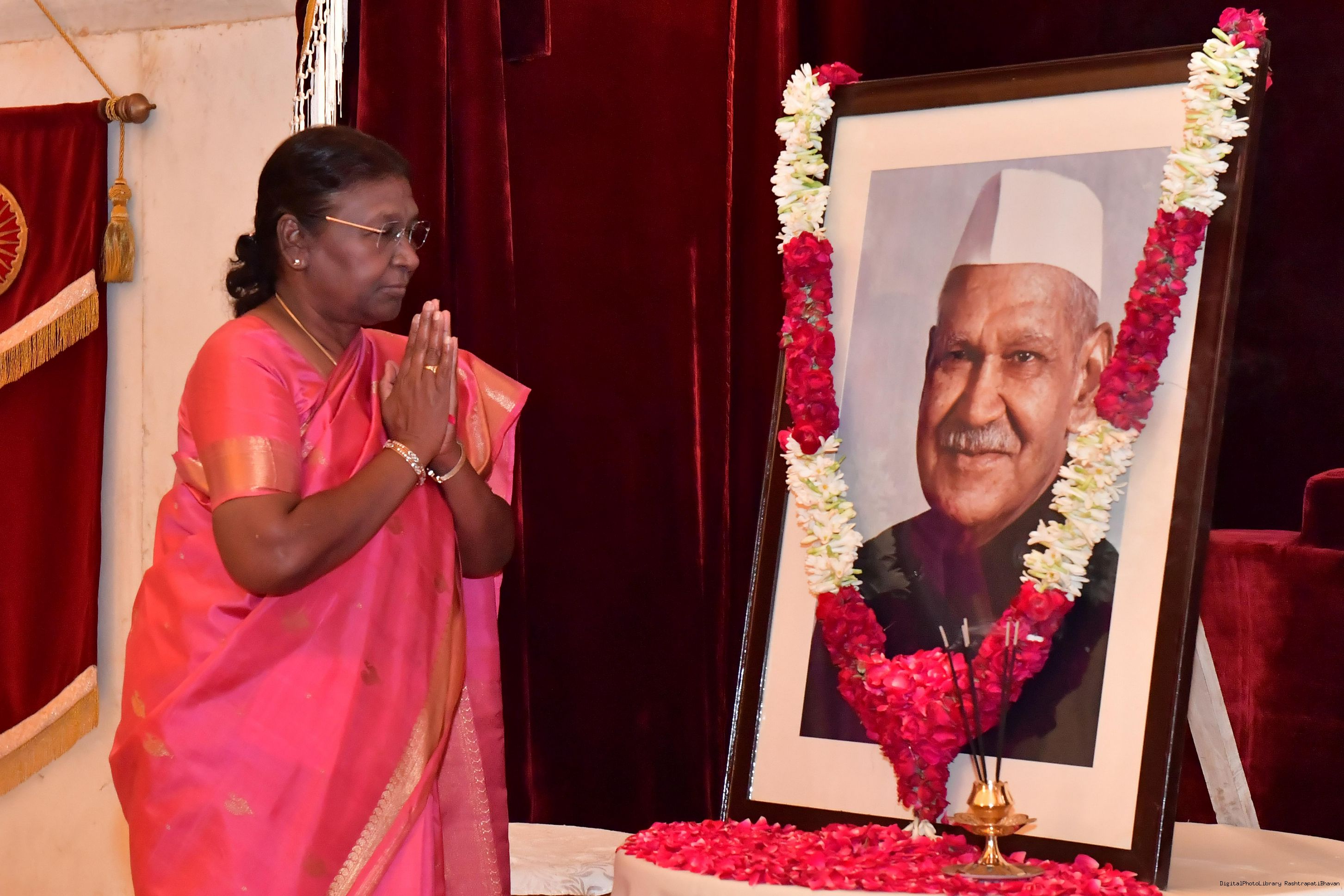 The President of India, Smt Droupadi Murmu paid homage to Dr Shanker Dayal Sharma, former President of India, on his birth anniversary at Rashtrapati Bhavan on August 19, 2023.