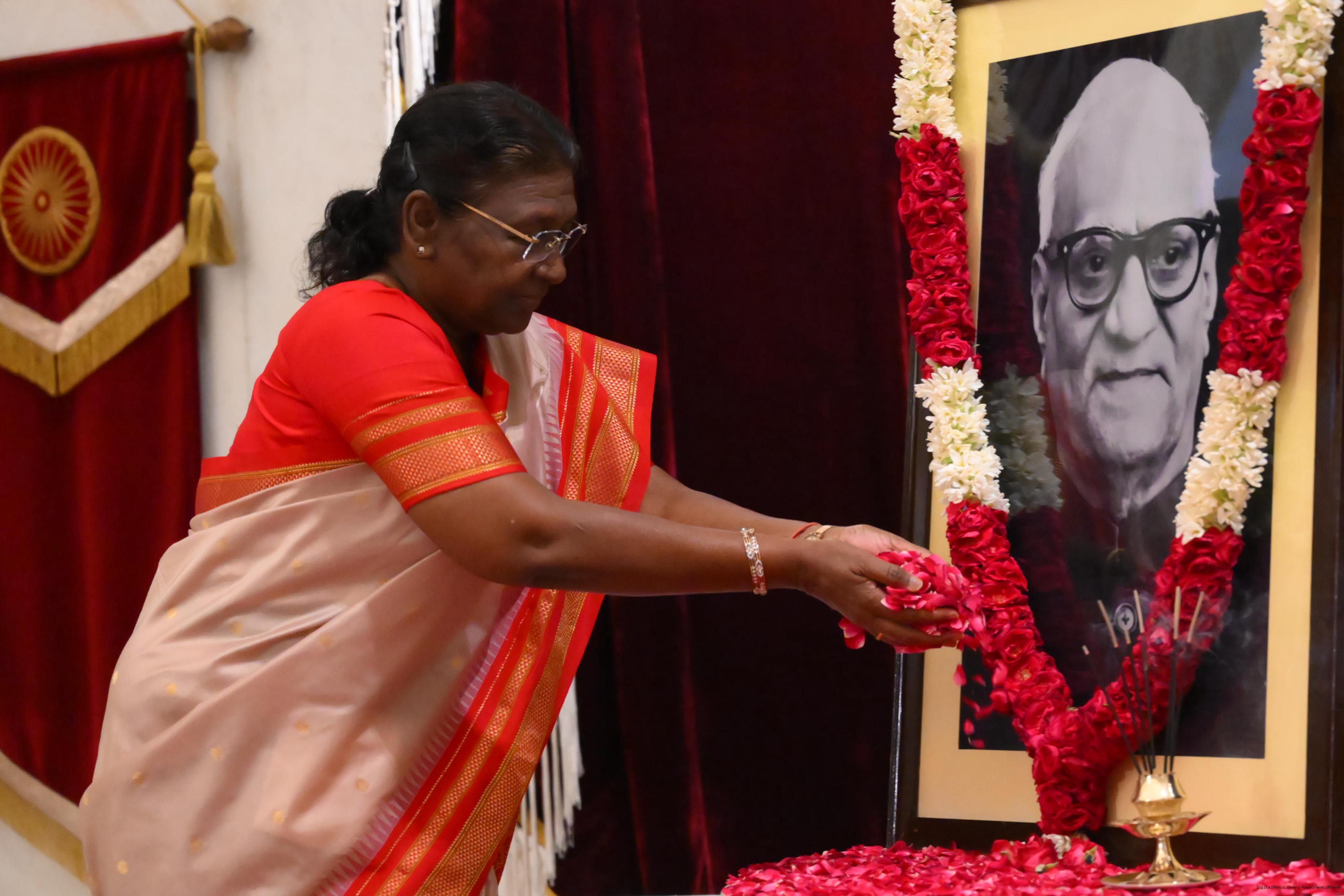 The President of India, Smt Droupadi Murmu paid floral tributes to Shri V.V. Giri, former President of India, on his birth anniversary at Rashtrapati Bhavan on August 10, 2023.