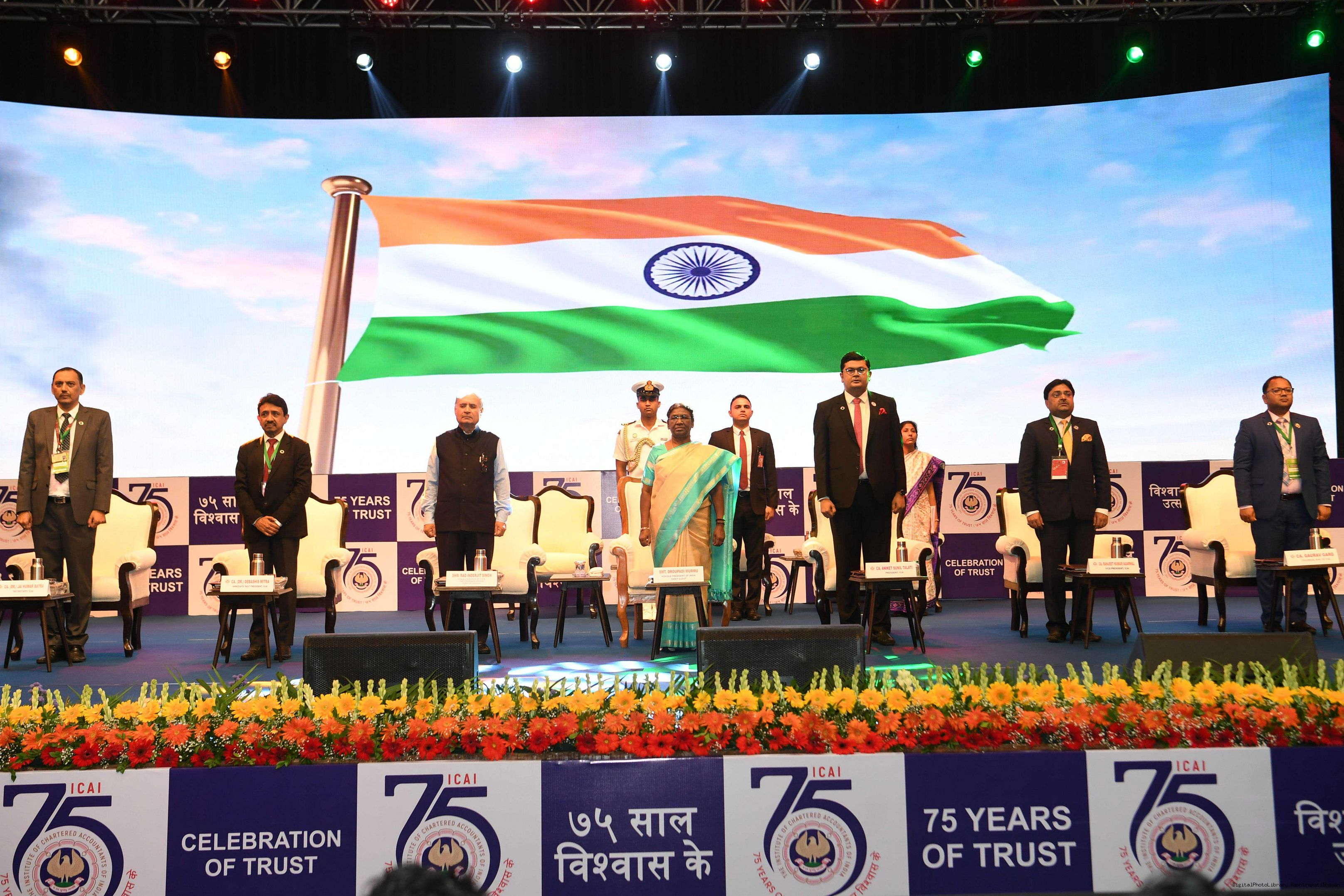 The President of India, Smt Droupadi Murmu gracing the 75th Foundation Day celebrations of the Institute of Chartered Accountants of India (ICAI) at Rashtrapati Bhavan in New Delhi on July 1, 2023.