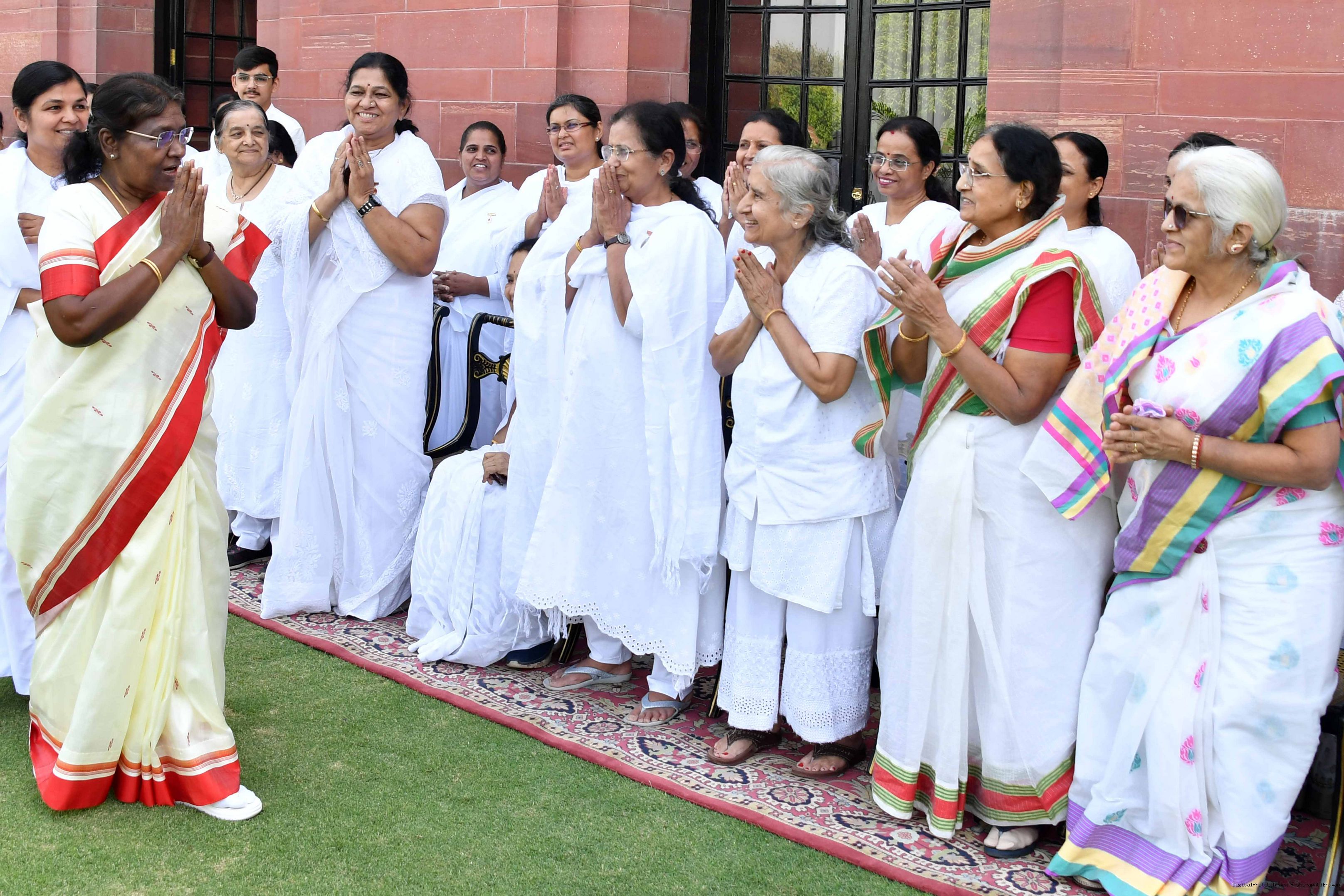 The President of India Smt. Droupadi Murmu posing a Group Photo with members of Pune group of Brahma Kumaris at Rashtrapati Bhavan on April 14, 2023.