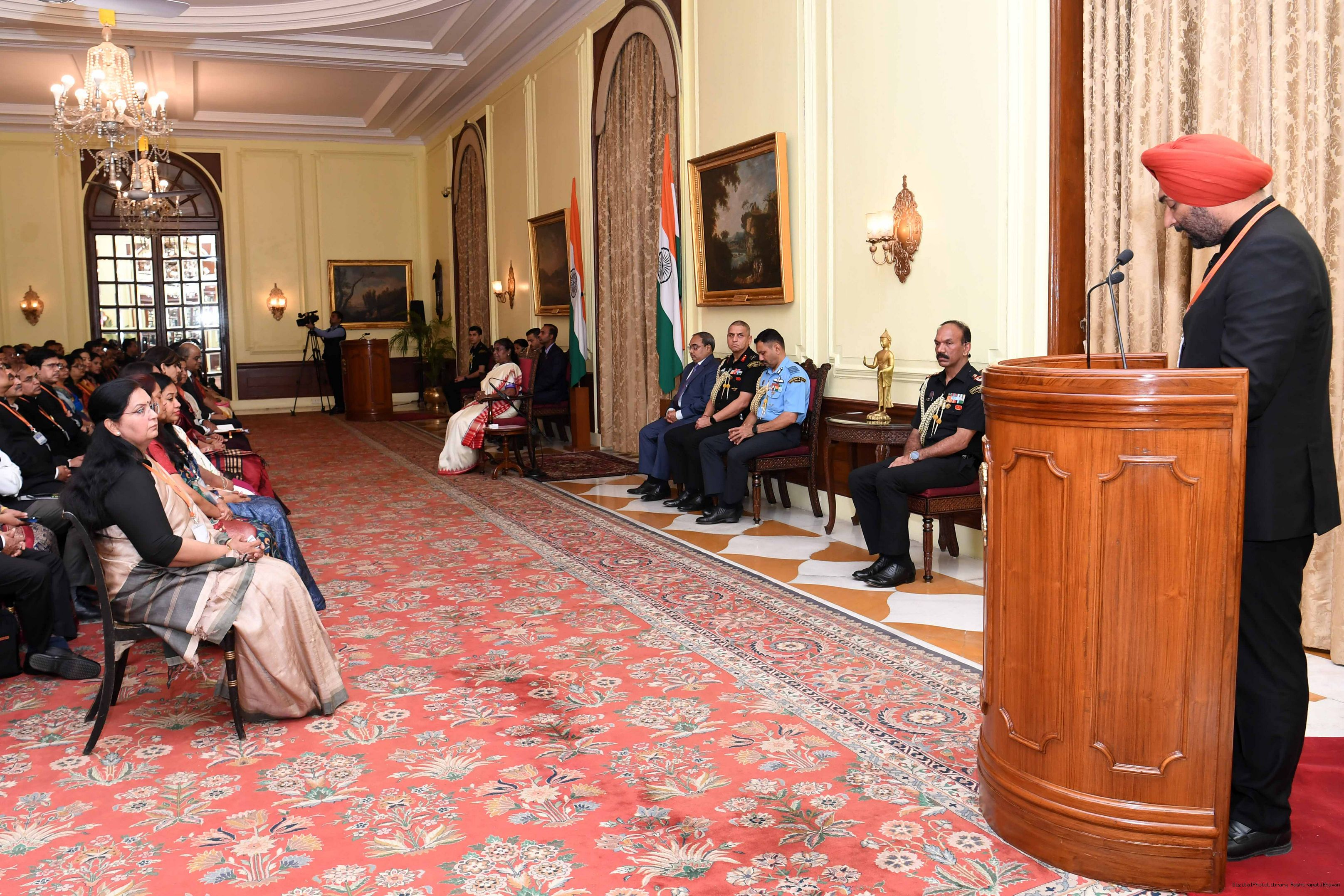 The President of India, Smt. Droupadi Murmu interacting with the Officer Trainees attending the 124th Induction Training Programme for State Civil Service Officers, promoted to the IAS at Lal Bahadur Shastri National Academy of Administration, Mussoorie at Rashtrapati Bhavan on March 13, 2023.