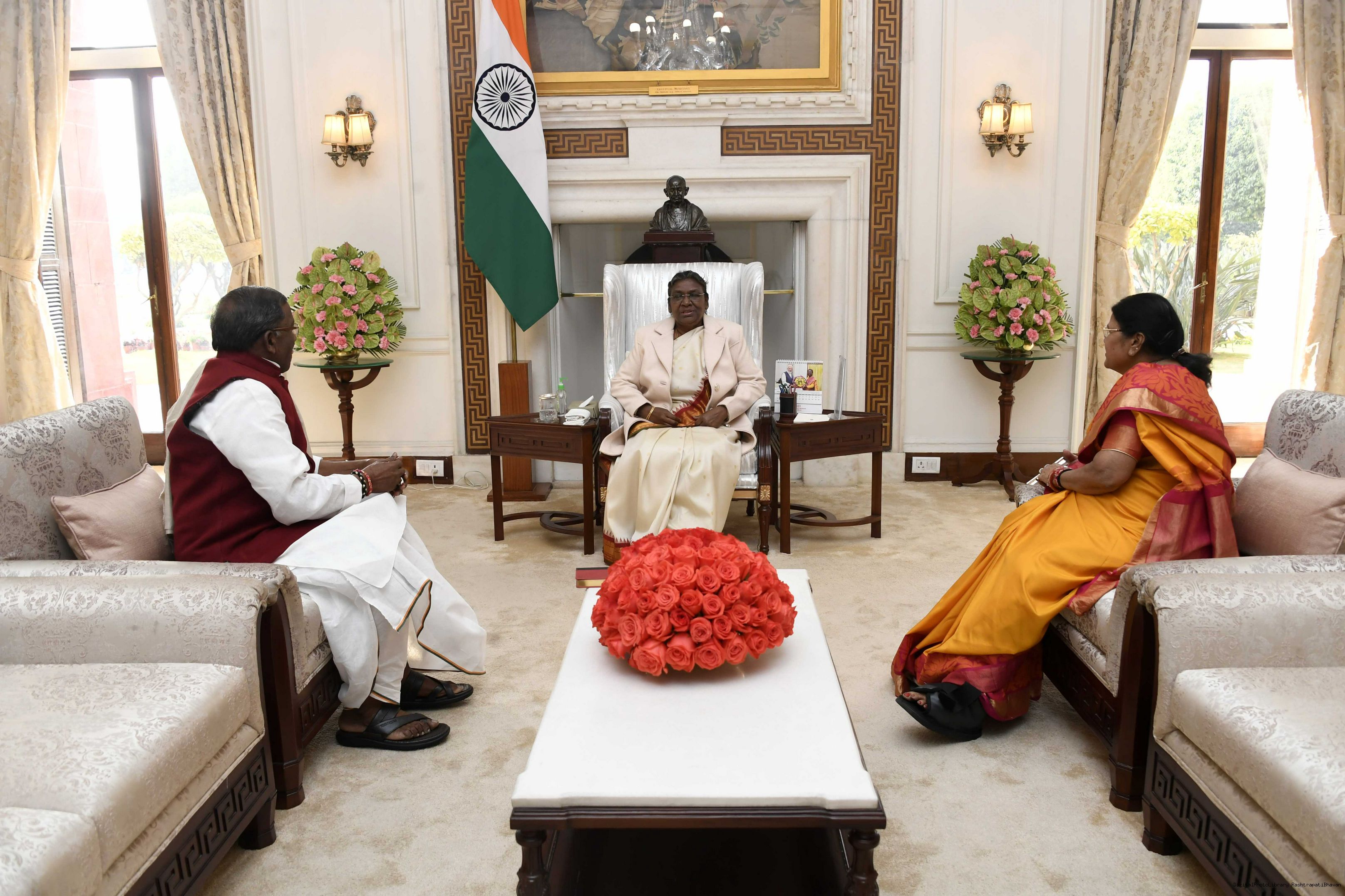 The Governor of Maharashtra, Shri Ramesh Bais along with his wife Smt. Rambai Bais called on the President of India, Smt. Droupadi Murmu, at Rashtrapati Bhavan on February 28, 2023.
