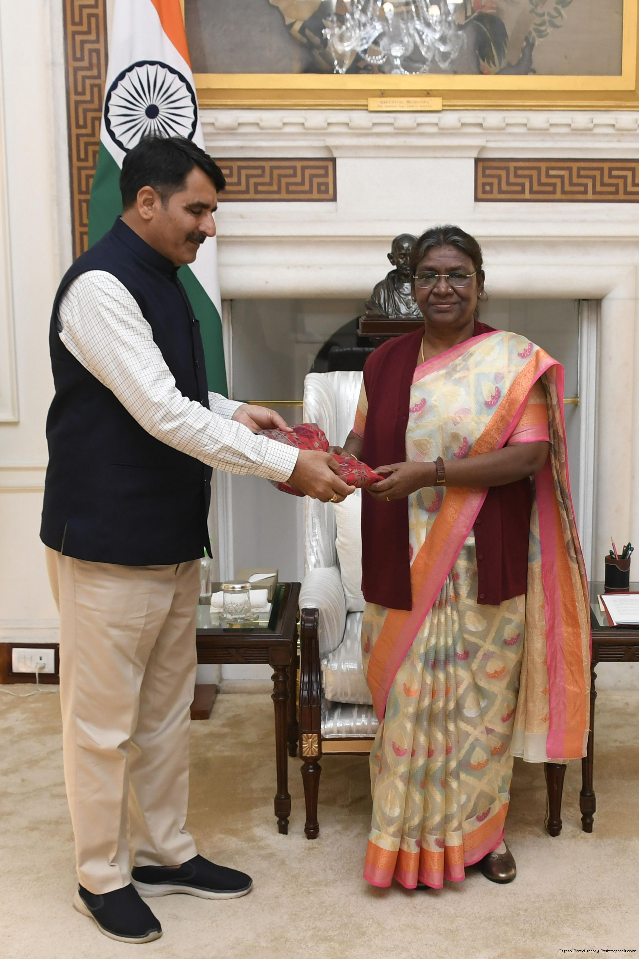 Shri Shankar Chaudhry, Speaker, Gujarat Legislative Assembly meeting with the President of India Smt. Droupadi Murmu at Rashtrapati Bhavan on February 06, 2023.