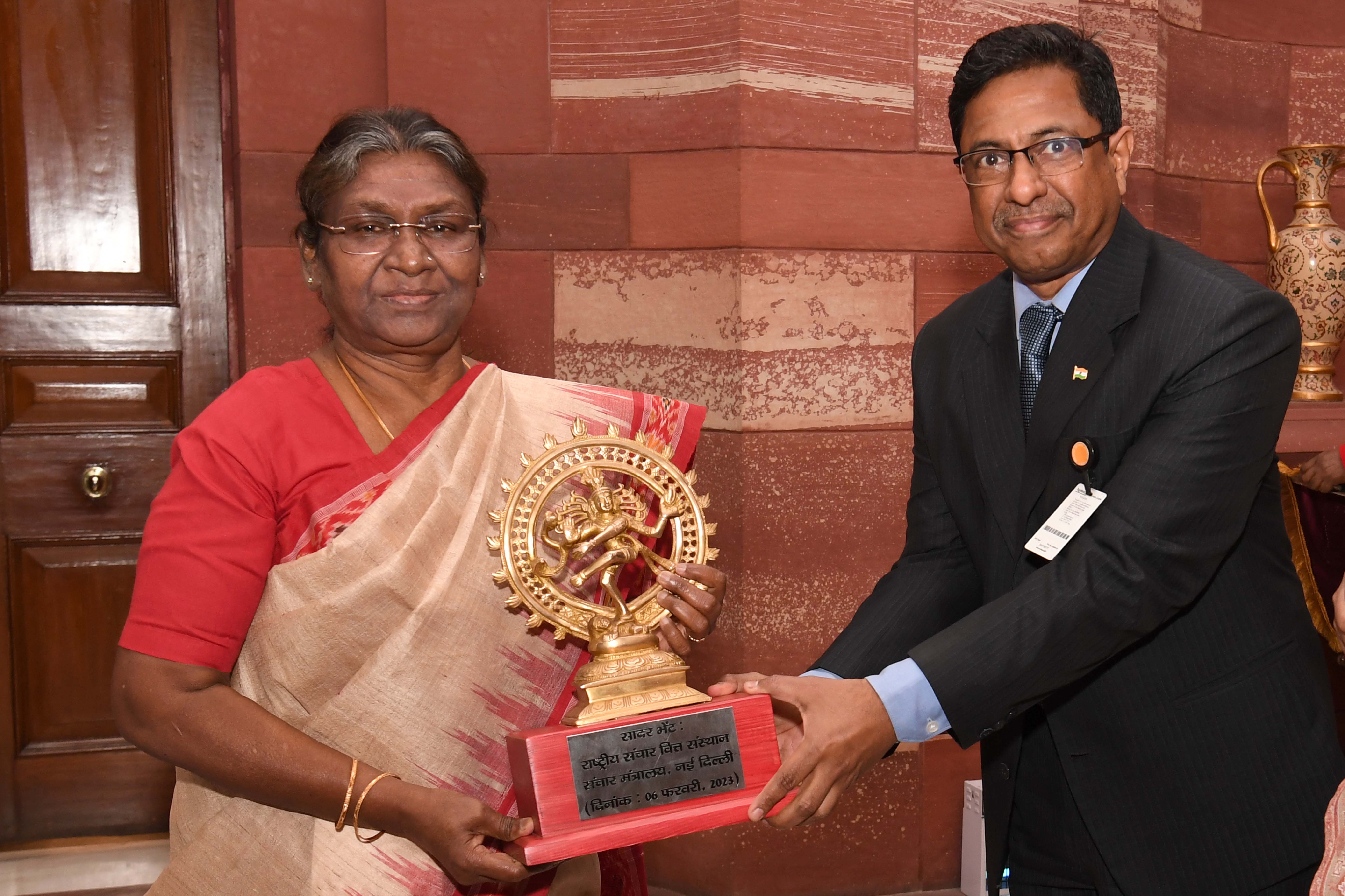 Shri K Rajaraman, Secretary, Telecom, Shri Srikanta Panda along with others meeting with the President of India Smt Droupadi Murmu at Rashtrapati Bhavan on February 06, 2023.