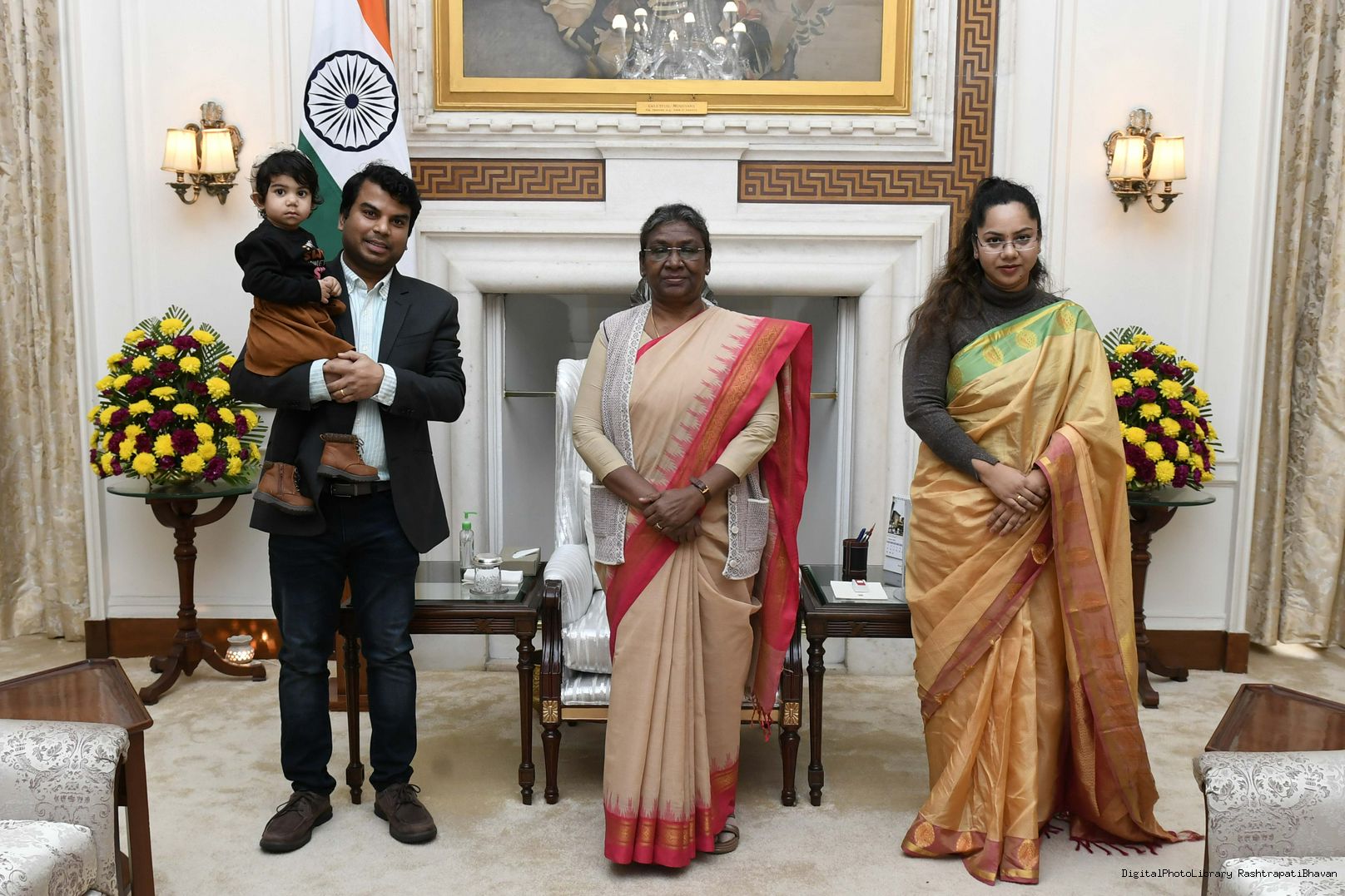 Shri Lalit Kumar Agarwalla along with his family members meeting with the President of India Smt. Droupadi Murmu at Rashtrapati Bhavan on January 24, 2023.