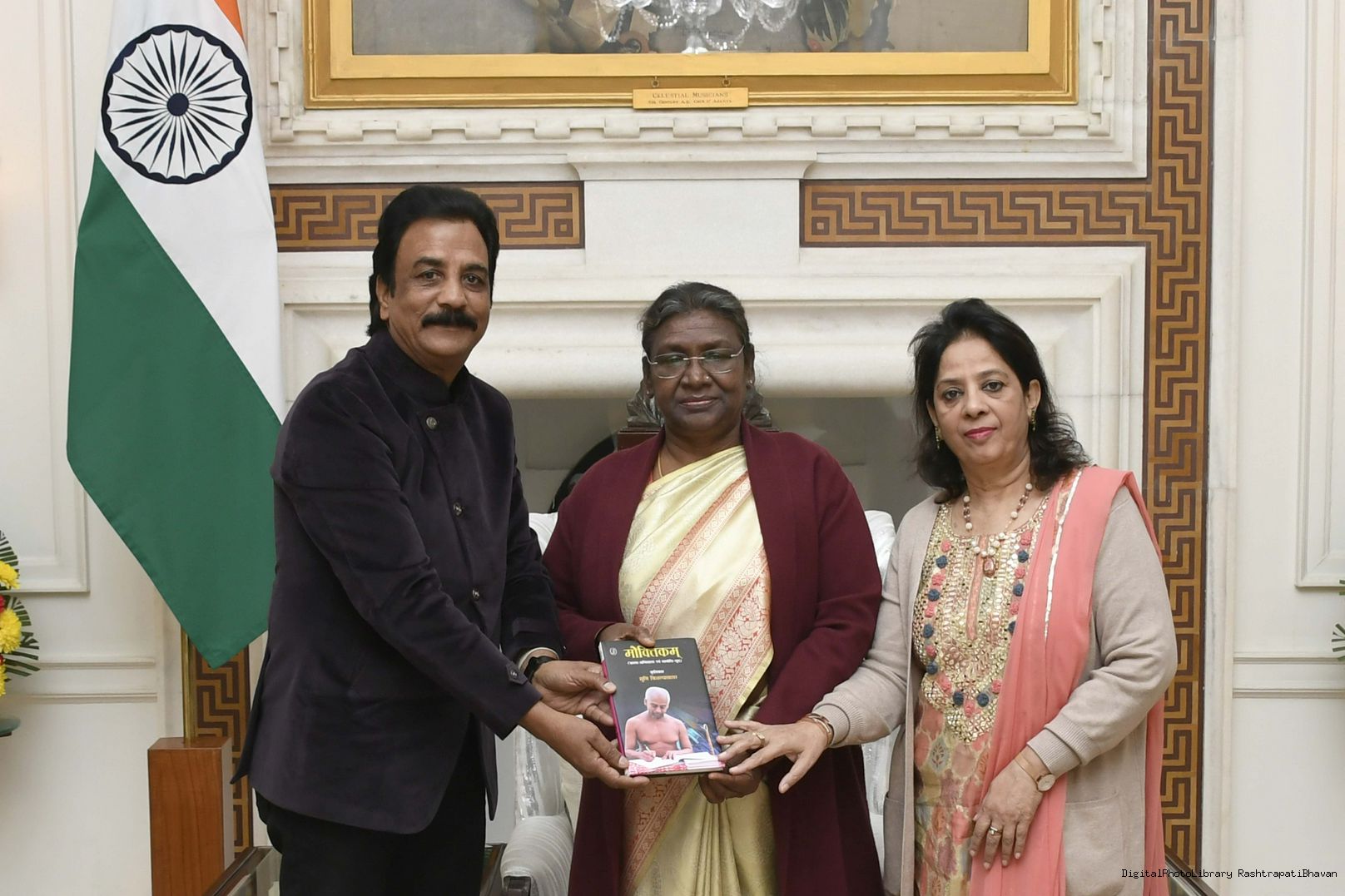 Shri Ram Madhav, Member, Board of Governors, India Foundation and former National General Secretary, BJP along with othrer meeting with the President of India Smt. Droupadi Murmu at Rashtrapati Bhavan on January 24, 2023.