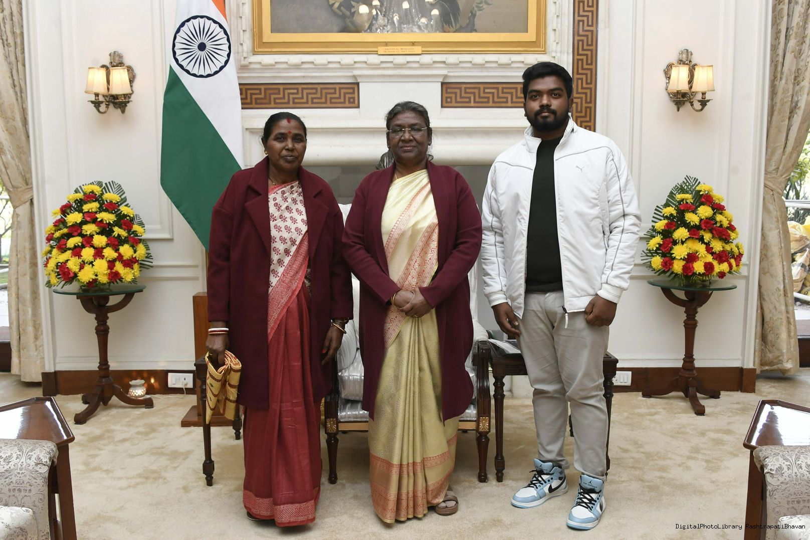 Smt. Menka Sardar, Ex-MLA, Potka, Jharkhand along with her son meeting with the President of India Smt. Droupadi Murmu at Rashtrapati Bhavan on January 20, 2023.