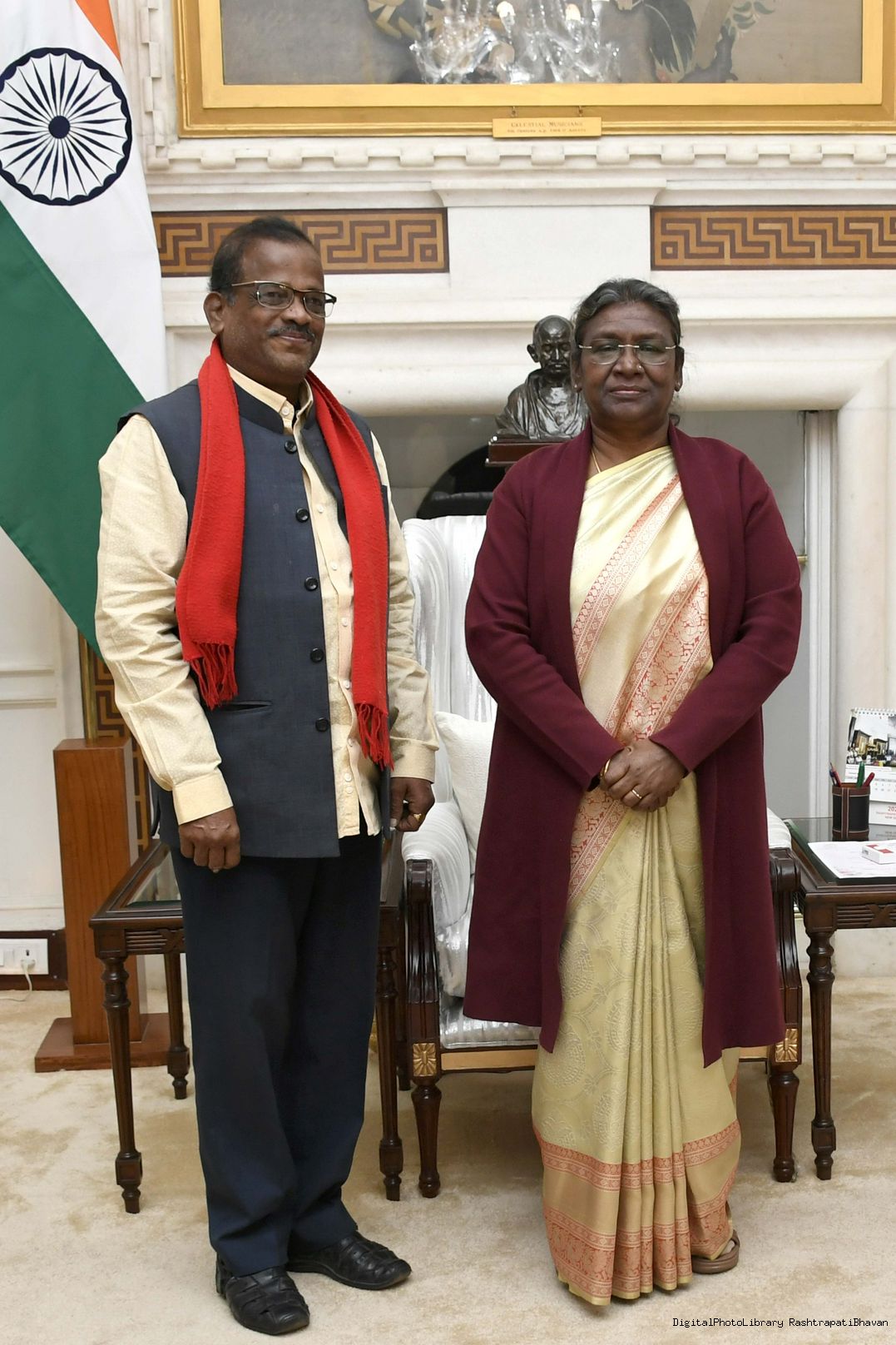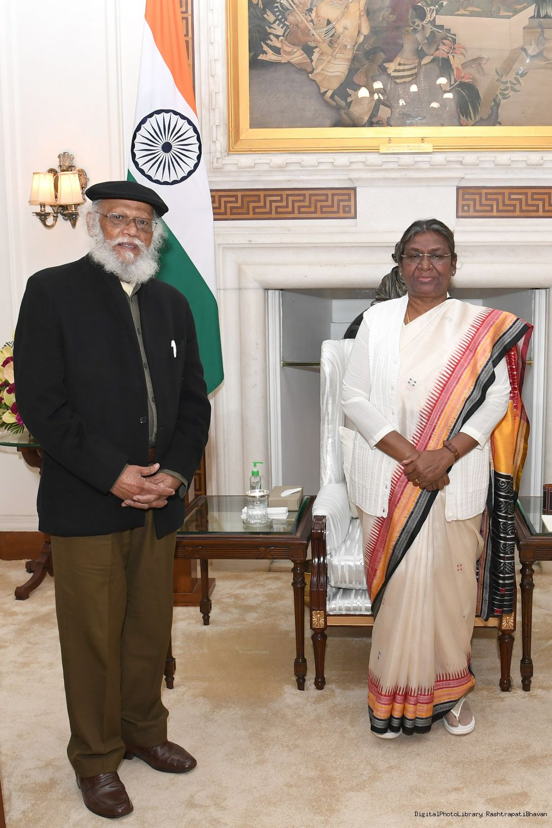 Shri Jatin Das, artist from Mayurbhanj, Odisha meeting with the President of India Smt. Droupadi Murmu at Rashtrapati Bhavan on January 21, 2023.