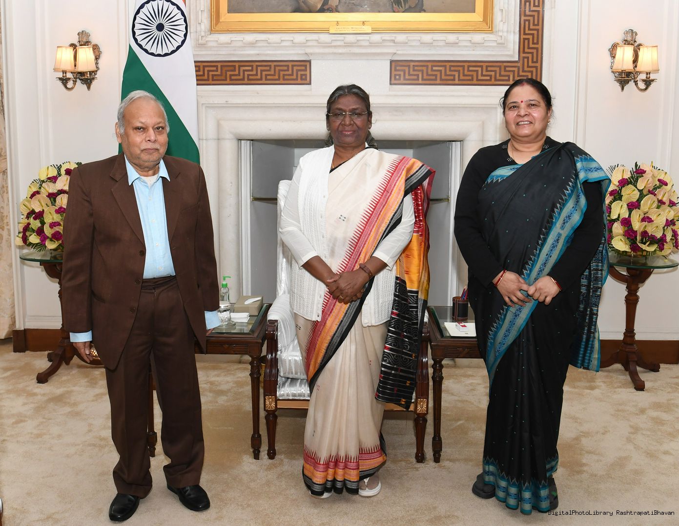 Shri Justice P.K. Mohanty, Acting Chairperson and Member (Judicial), Lokpal of India along with his wife Smt. Kalpana Mohanty meeting with the President of India Smt. Droupadi Murmu at Rashtrapati Bhavan on January 21, 2023.