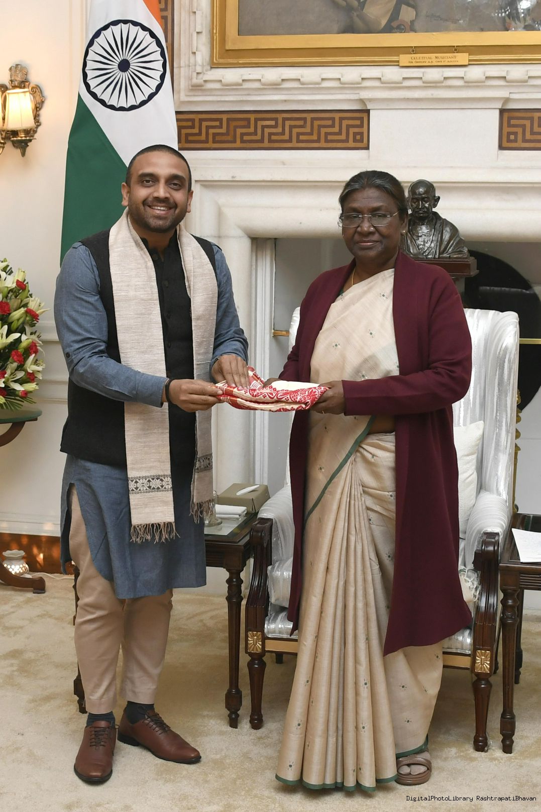 Shri Kunal Sarangi, former Whip of the Jharkhand Legislative Assembly, Jharkhand Spokesperson, BJP meeting with the President of India Smt. Droupadi Murmu at Rashtrapati Bhavan on January 09, 2023.