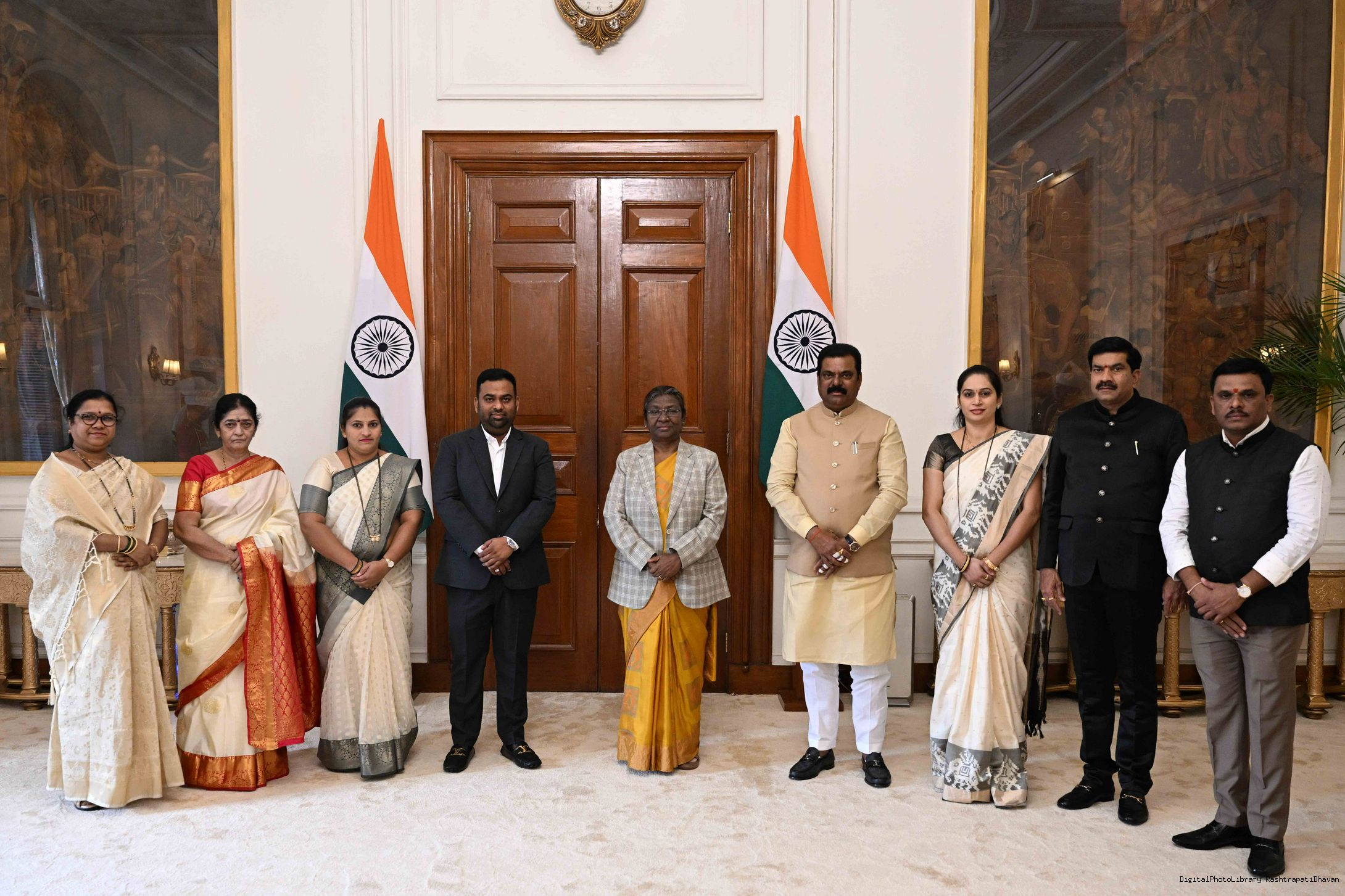 Shri Kapil Moreshwar Patil, Union Minister of State for Panchayati Raj along with others meeting with the President of India, Smt. Droupadi Murmu, at Rashtrapati Bhavan on Dec 20, 2022.