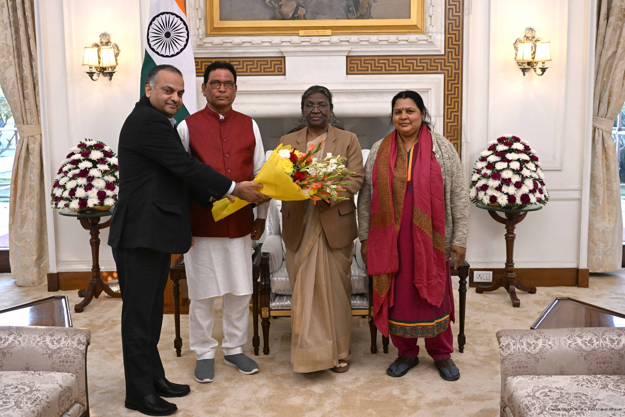 Shri Naba Charan Majhi, MLA from Rairangpur along with others meeting with the President of India, Smt. Droupadi Murmu, at Rashtrapati Bhavan on Dec 16, 2022.