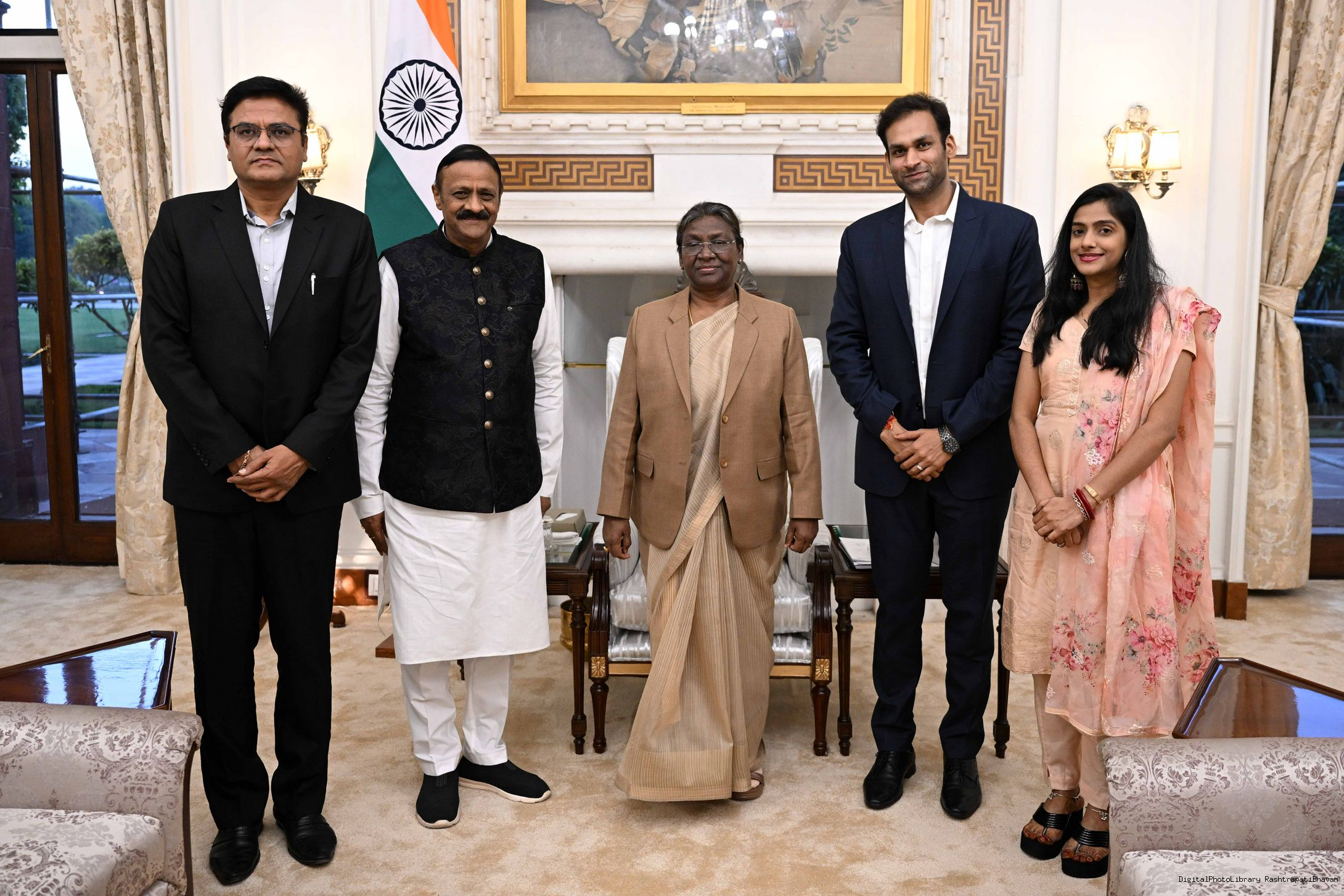 Shri Sunil Kumar Jain along with others meeting with the President of India, Smt. Droupadi Murmu, at Rashtrapati Bhavan on Dec 13, 2022.